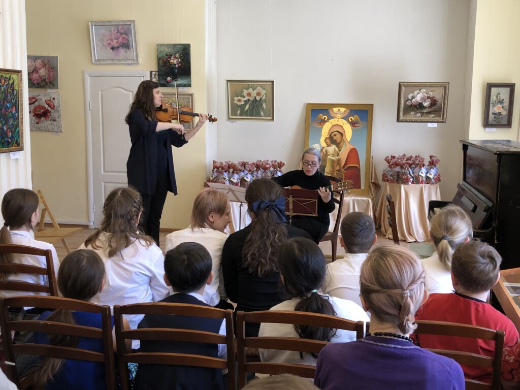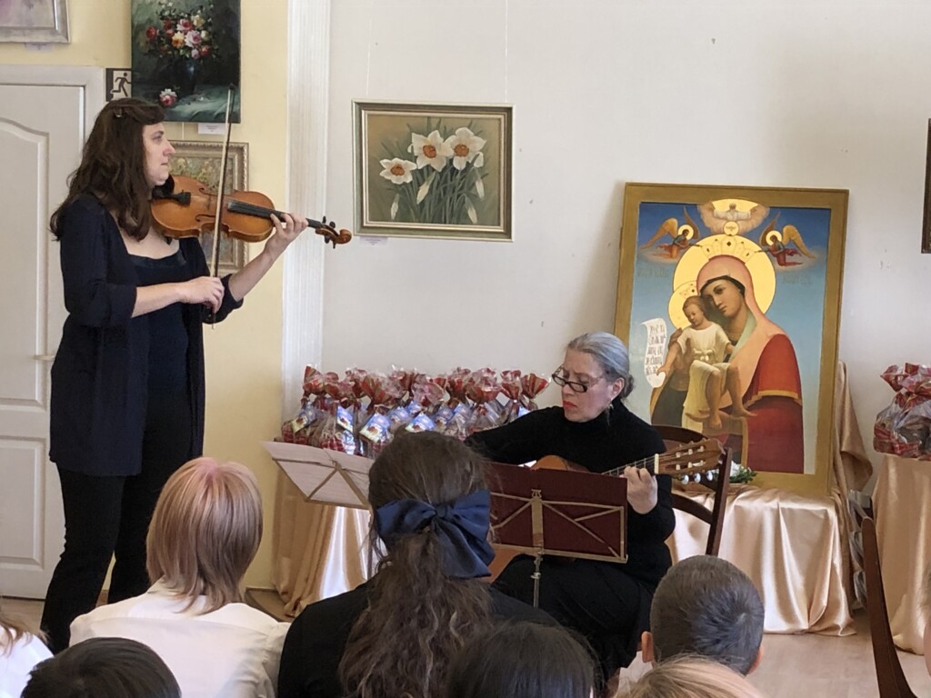 Юные музыканты и преподаватели по классу фортепиано, гитары и скрипки порадовали гостей центра вдохновенным исполнением классических пьес.