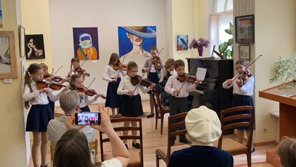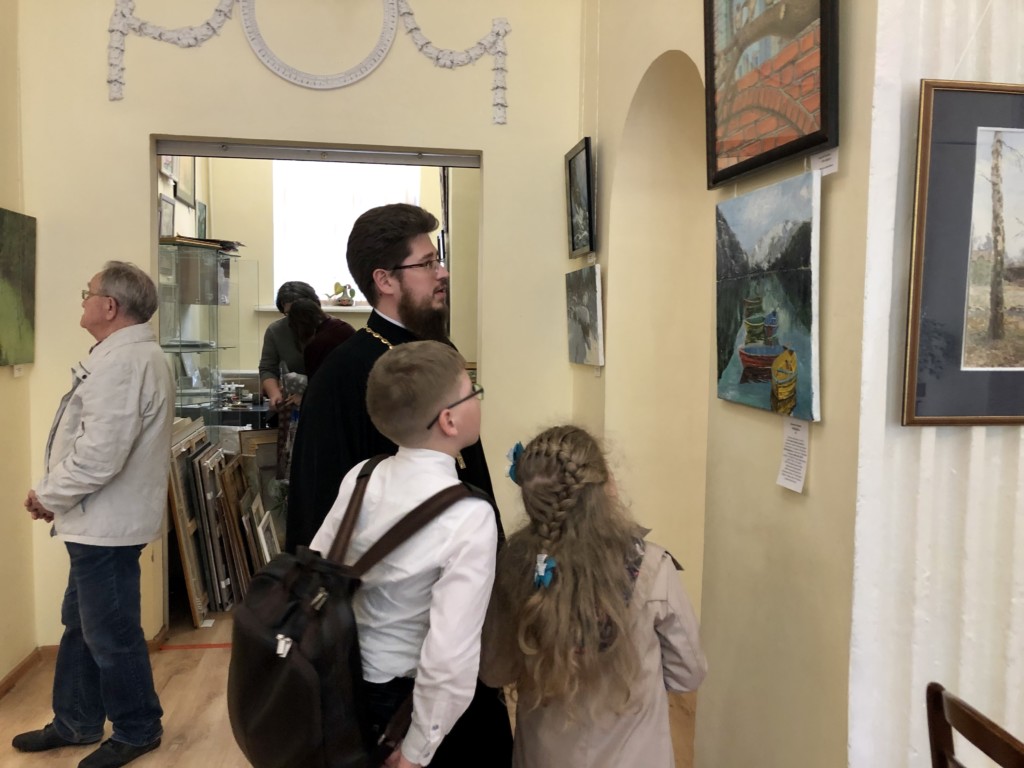На открытии выставки с концертом выступили юные скрипачи и пианисты Фрязинской детской школы искусств @mudofdshi. Поздравил с открытием выставки и сказал слова напутствия молодым художникам настоятель Державного храма города г.Фрязино @fryazino_hram священник Димитрий Третьяков @pater_tercius.