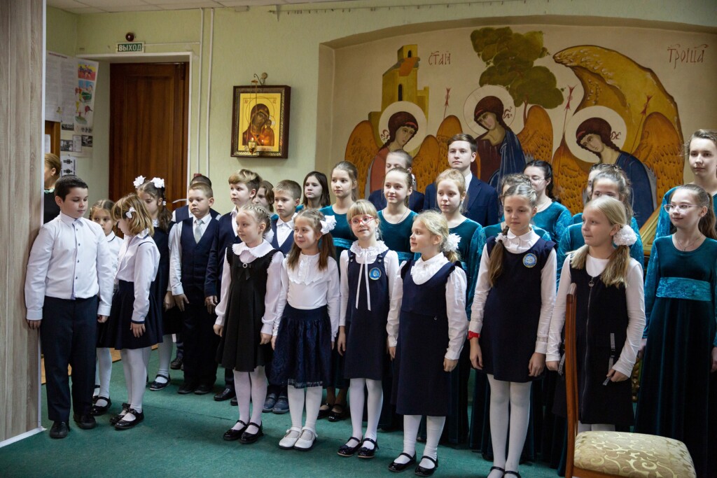 Сводный хор Православной Алексиевской гимназии г. Щелково под руководством регента Анны Александровны Медведевой и концертмейстера Ирины Ивановны Илларионовой исполнили песню «Марш Преображенского полка», который был гимном в петровскую эпоху.