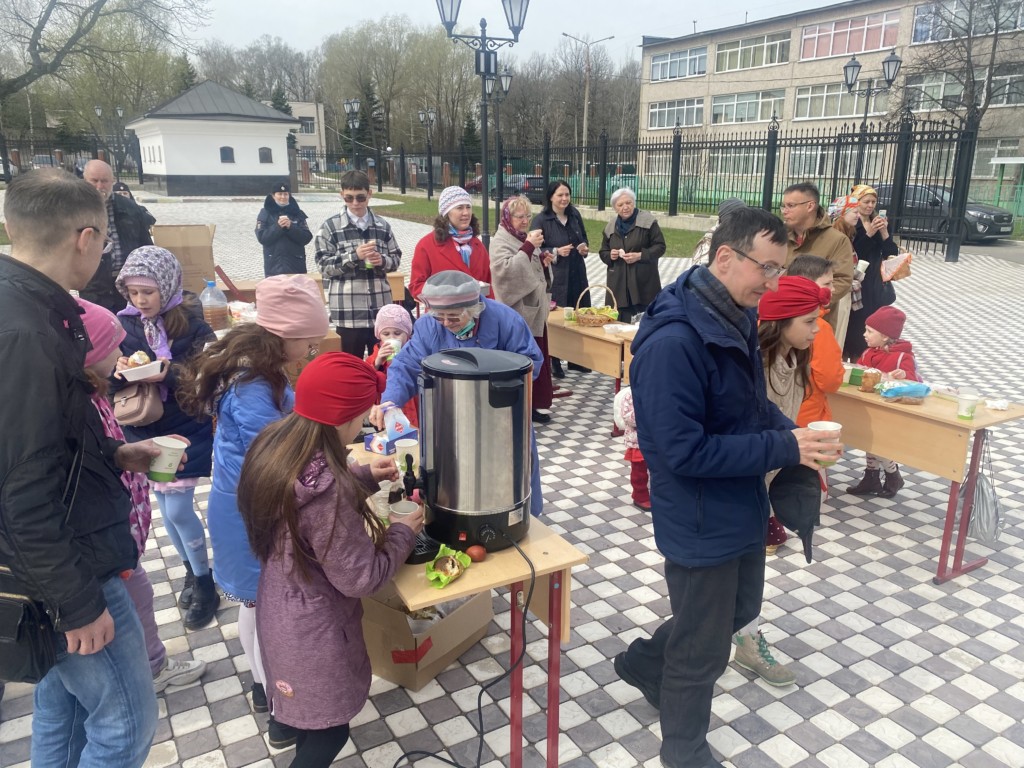 После Литургии состоялся приходской пасхальный праздник-чаепитие с участием прихожан, родителей и воспитанников Воскресной школы.