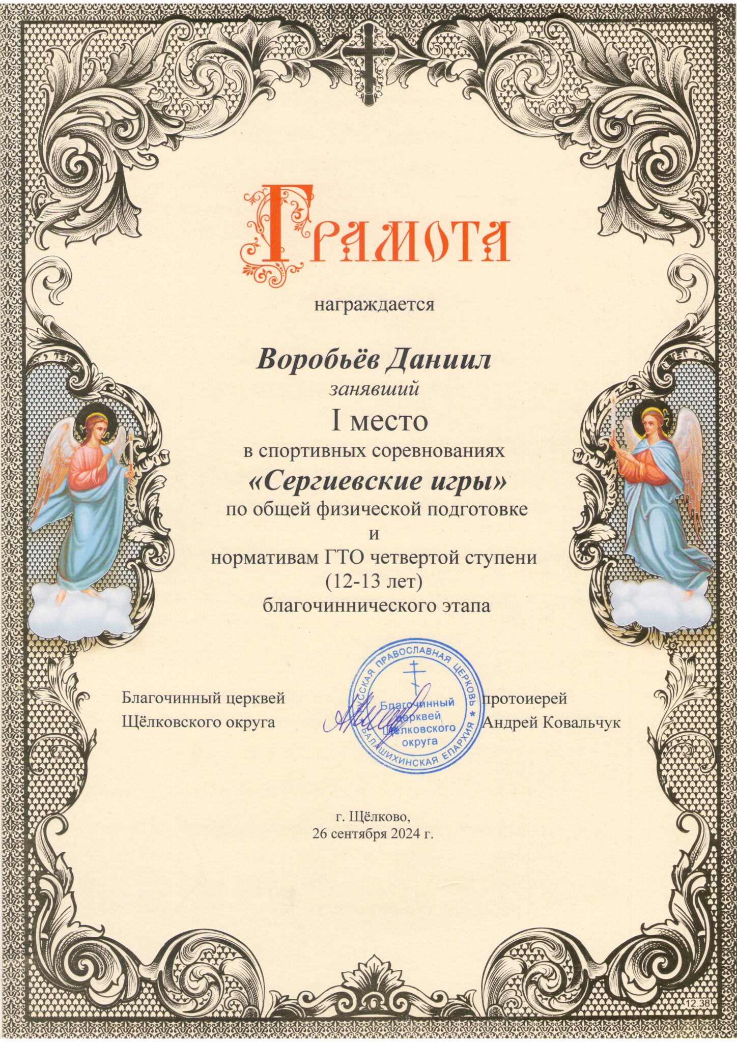 Мы с радостью поздравляем Воробьёва Даниила занявшего I место на благочинническом этапе «Сергиевских игр»!