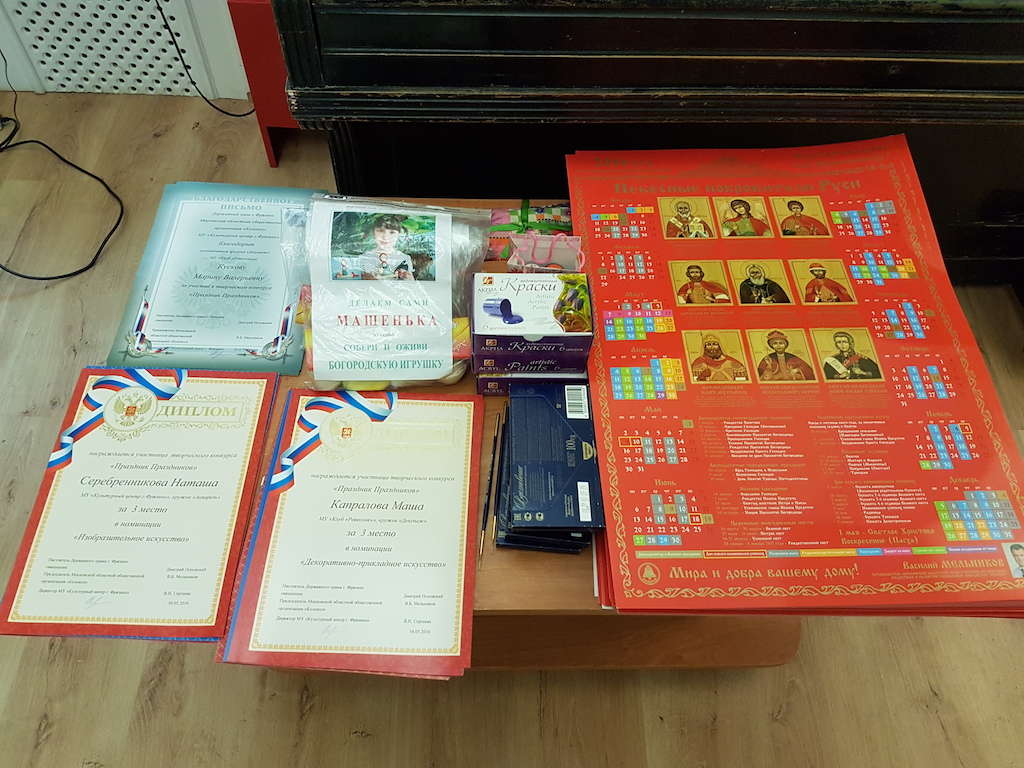 19 мая в Культурном центре города Фрязино состоялось подведение итогов конкурса, посвященного празднику Пасхи. Авторам лучших работ вручили подарки организаторы конкурса — настоятель Державного храма наукограда священник Димитрий Поповский и председатель областной общественной организации поддержки и развития социальных инициатив «Колокол»В.Б.Мельников.