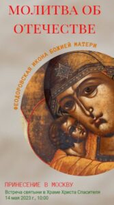 Сердечно приветствую всех вас этими жизнеутверждающими словами. В дни продолжающегося пасхального торжества мы с радостью встречаем в Первопрестольном граде Москве чудотворную Феодоровскую икону Божией Матери, принесенную из Богоявленско-Анастасииного монастыря Костромы в главный собор Русской Православной Церкви – Кафедральный Соборный Храм Христа Спасителя.