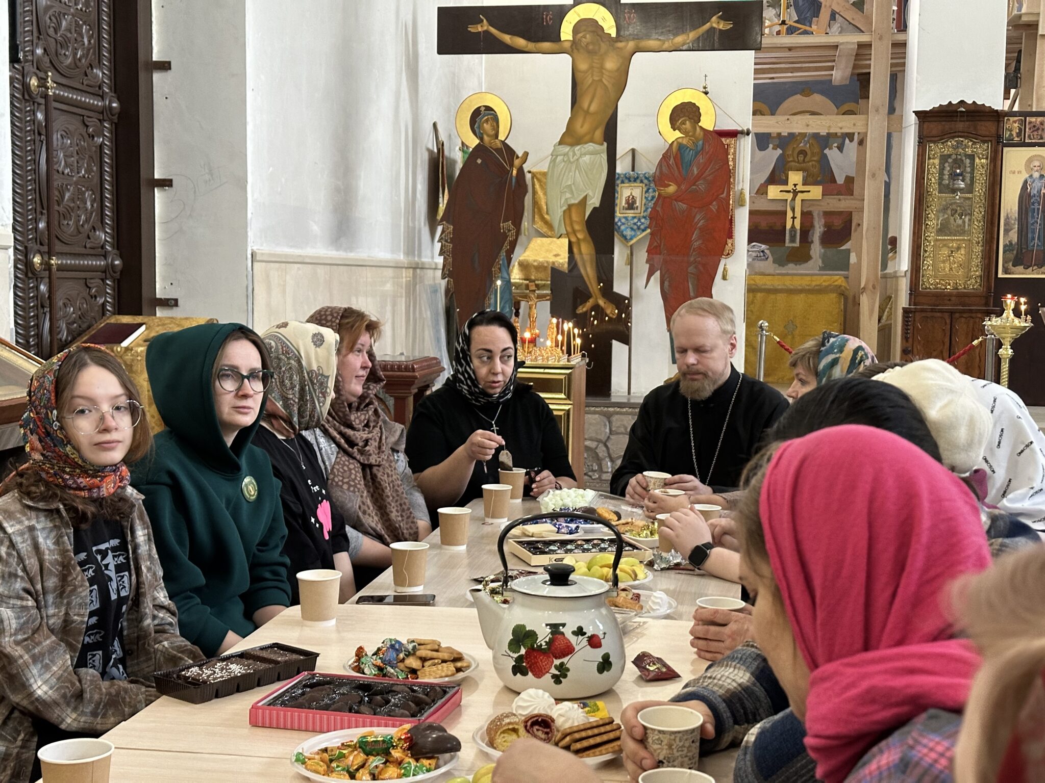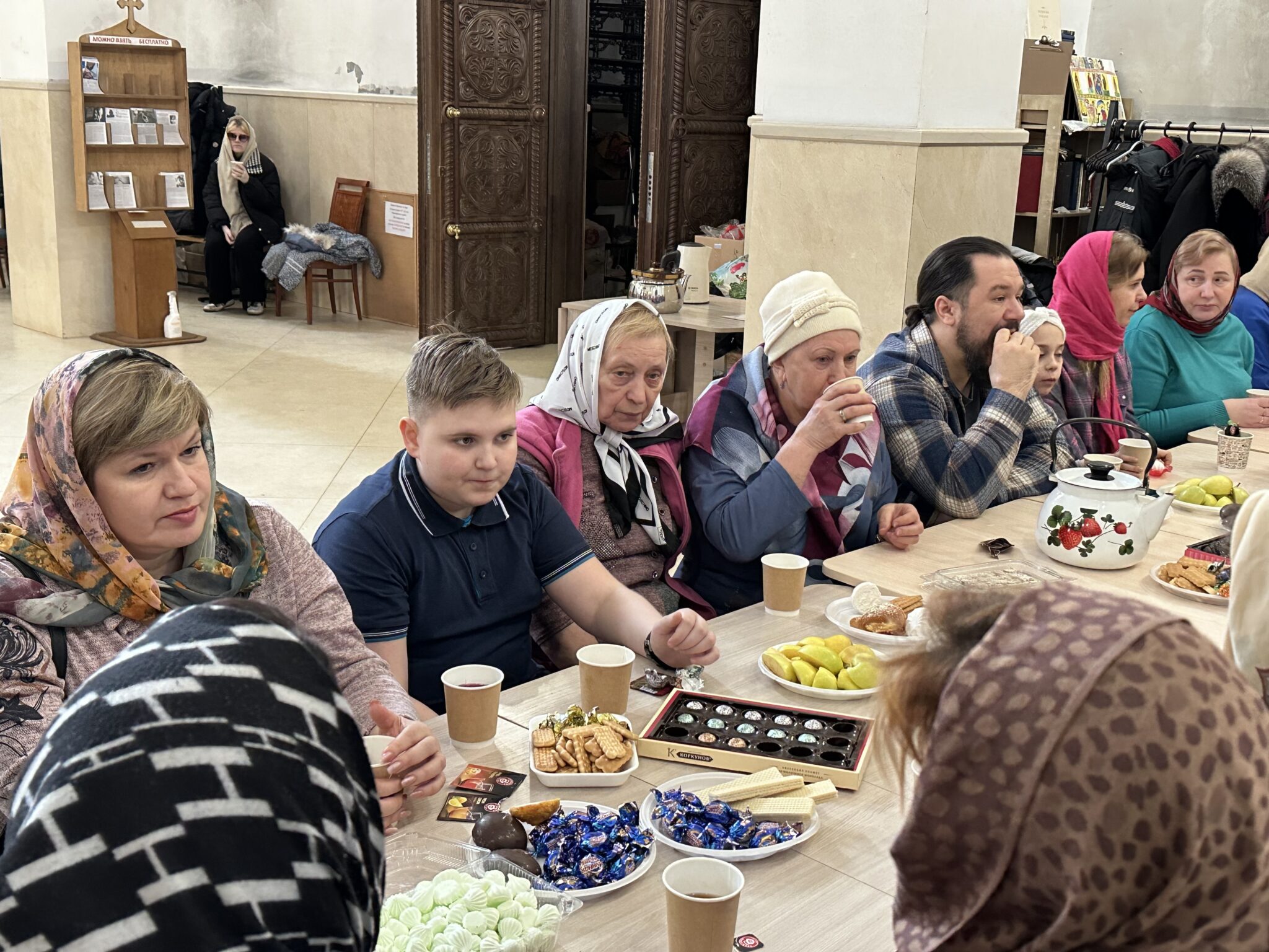 «Православная гостиная» традиционно продолжилась за чаепитием в помещении храма, где собравшиеся могли по-семейному пообщаться и получить ответы на интересующие вопросы.