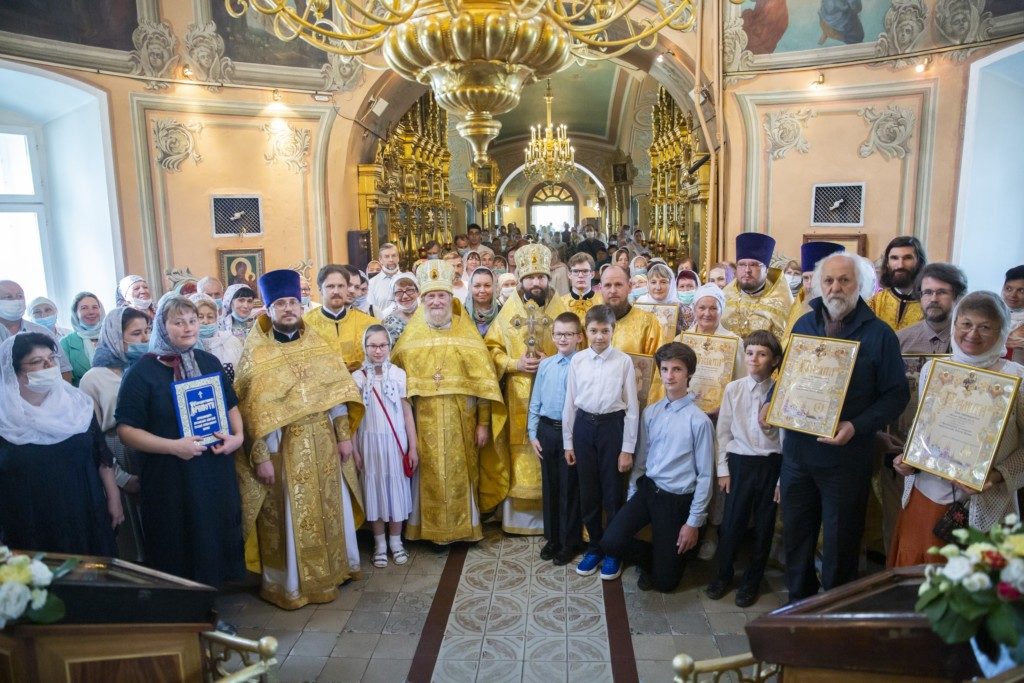 По окончании богослужения Владыка Петр поздравил духовенство и прихожан храма с юбилеем и передал благословение митрополита Ювеналия, а после вручил Благодарственные и Благословенные грамоты Московской епархии настоятелю храма протоиерею Алексию Никонову и активным прихожанам в связи с юбилеем.