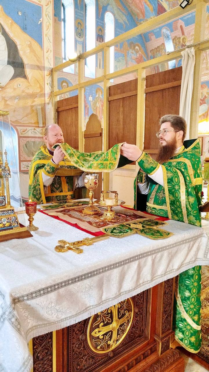 Божественную литургию возглавил заместитель благочинного Щёлковского церковного округа, настоятель храма иконы Божией Матери Державная г.Фрязино священник Димитрий Третьяков, которому сослужили клирик храма блаженной Ксении священник Сергий Ковальчук и клирик Гребневского храма д.Гребнево диакон Владимир Лебедев.