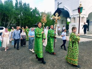 После Божественной Литургии был совершен праздничный крестный ход вокруг храма, по окончании которого отец Димитрий обратился к священнослужителям и прихожанам со словами поздравления с престольным праздником, а также произнес проповедь посвященную памяти святого праведного Иоанна Русского.