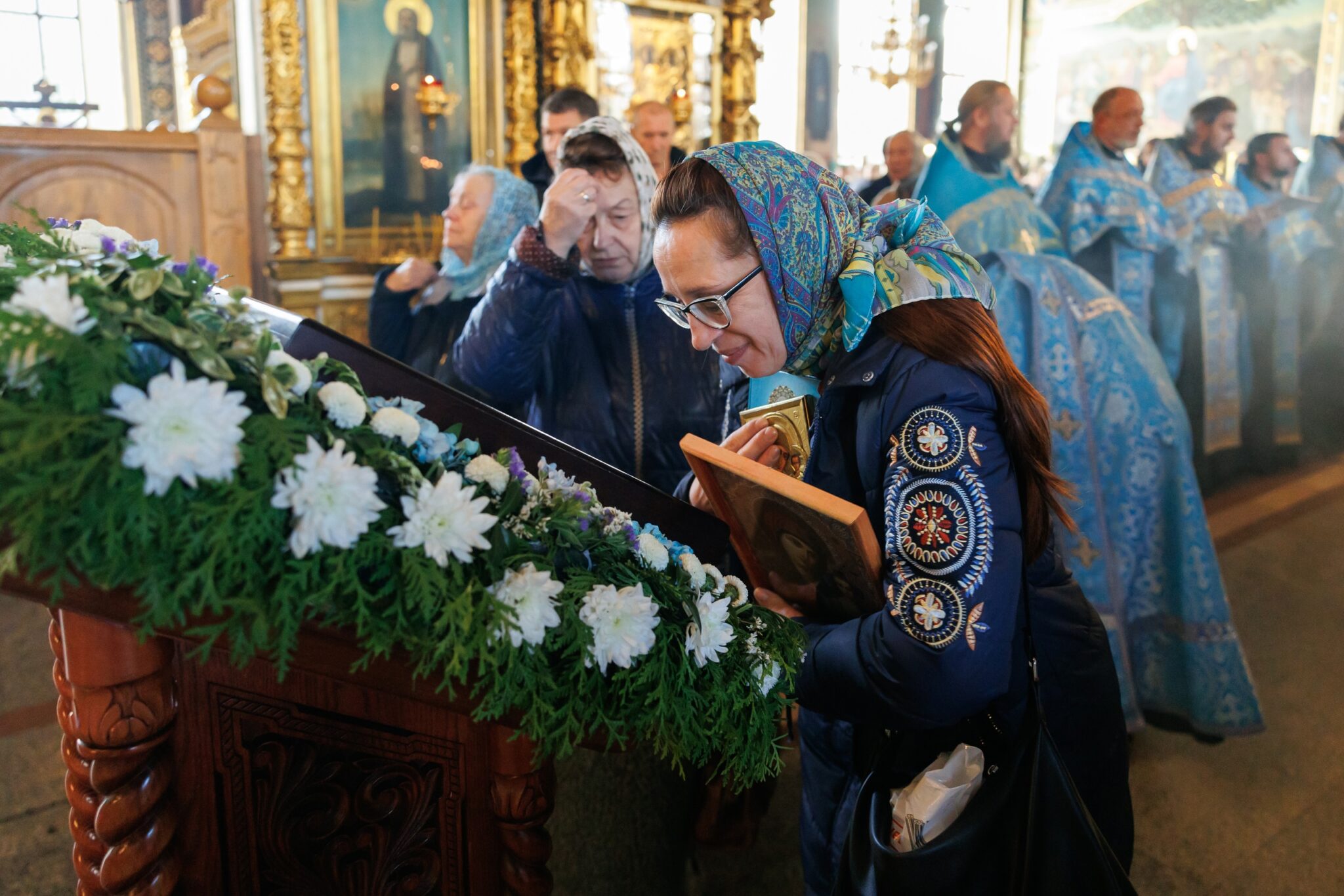 В храме был совершён молебен о Победе с акафистом Казанской иконе Божией Матери, после чего все желающие смогли поклониться иконе Царицы Небесной.