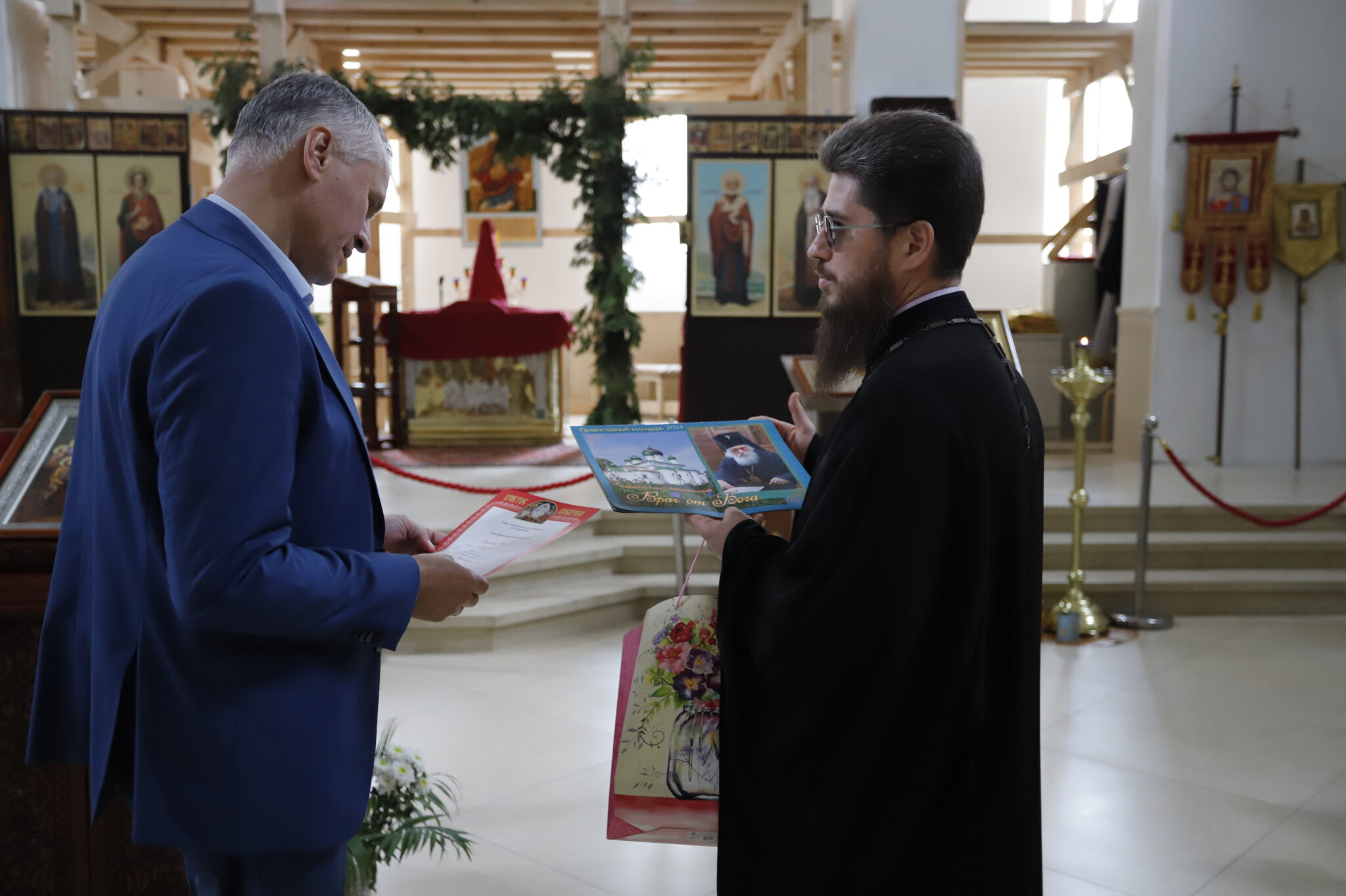 2 мая Глава городского округа Фрязино Дмитрий Воробьев встретился с настоятелем храма иконы Божией Матери Державная г. Фрязино священником Димитрием Третьяковым.