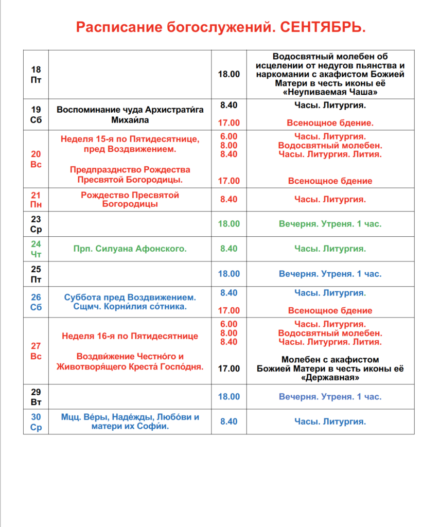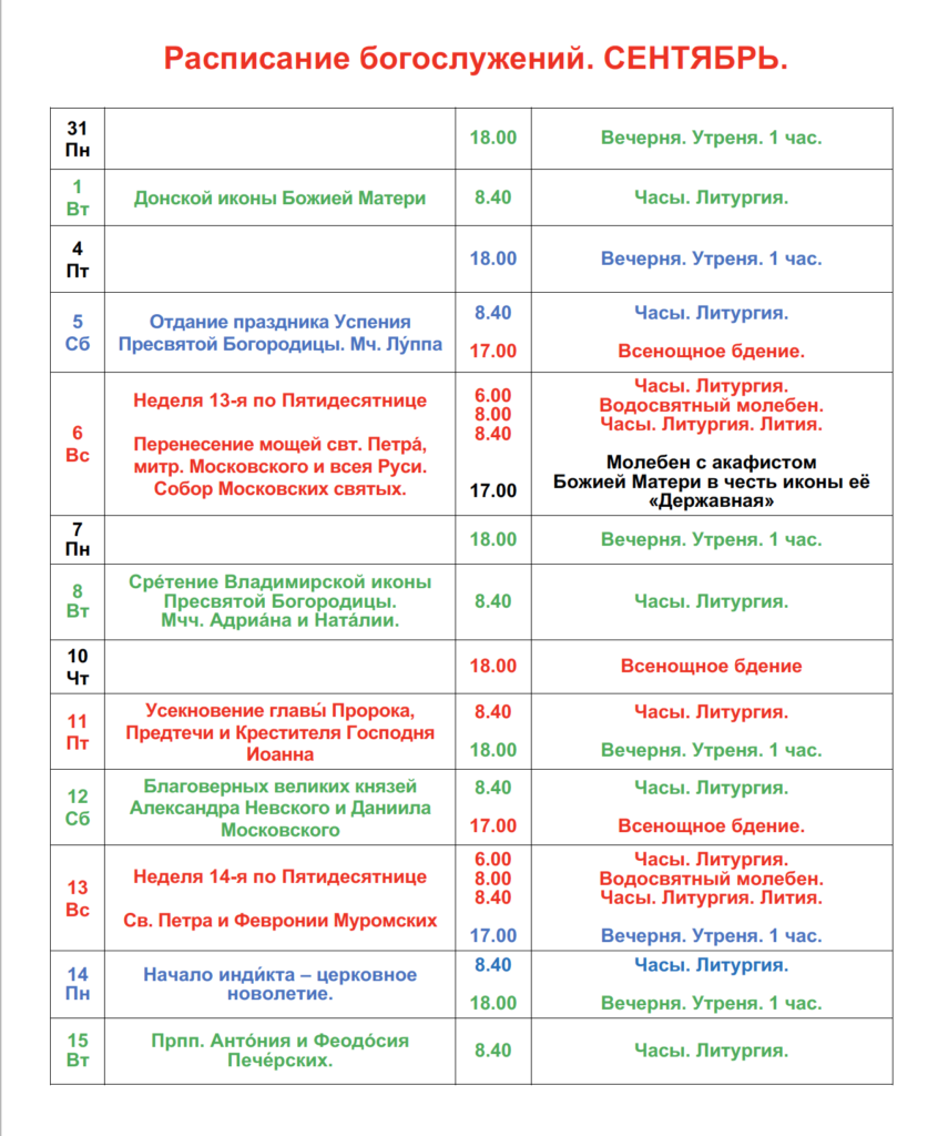 Расписание богослужений