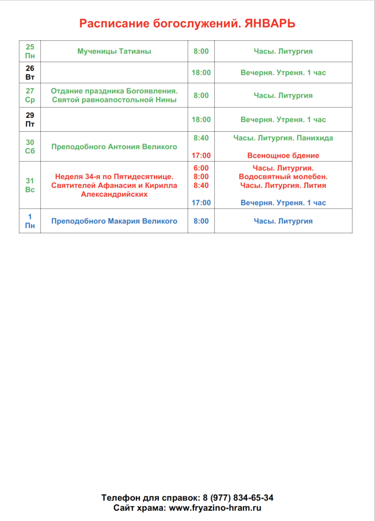 Расписание богослужений ГлавнаяНовости / Расписание богослужений Обновление на сайте в разделе «Расписание богослужений»