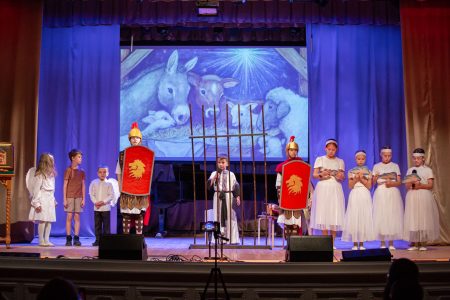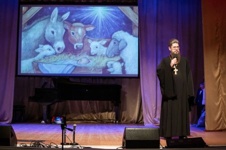 Открыл концерт словами поздравления настоятель священник Димитрий Третьяков. Далее перед прихожанами и гостями выступили хор Державного храма г.Фрязино под управлением матушки Юлии Маевской. А затем воспитанники воскресной школы показали представление и этюды, раскрывающие смысл праздника и прославляющие Рождество Богомладенца Христа.