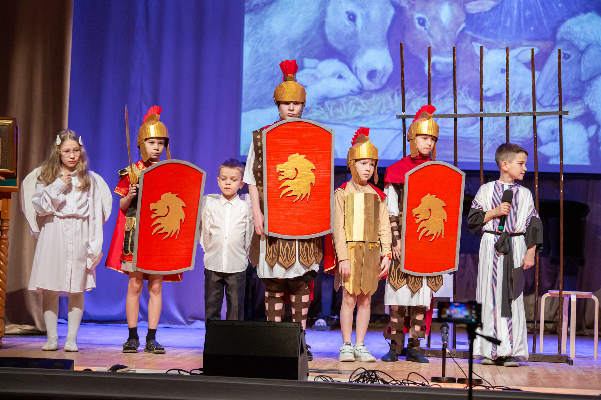 Открыл концерт словами поздравления настоятель священник Димитрий Третьяков. Далее перед прихожанами и гостями выступили хор Державного храма г.Фрязино под управлением матушки Юлии Маевской. А затем воспитанники воскресной школы показали представление и этюды, раскрывающие смысл праздника и прославляющие Рождество Богомладенца Христа.