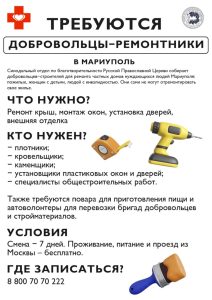 В марте 2023 года Синодальный отдел по благотворительности Русской Православной Церкви объявил набор добровольцев-строителей для ремонта частных домов нуждающихся людей Мариуполя: пожилых, людей с инвалидностью, одиноких женщин с детьми. К 27 апреля отремонтировано 27 домов. Группы добровольцев из 10-12 человек выезжают каждую неделю. Срок одной смены – 7 дней. Затраты на проезд, проживание и питание берет на себя Синодальный отдел по благотворительности.