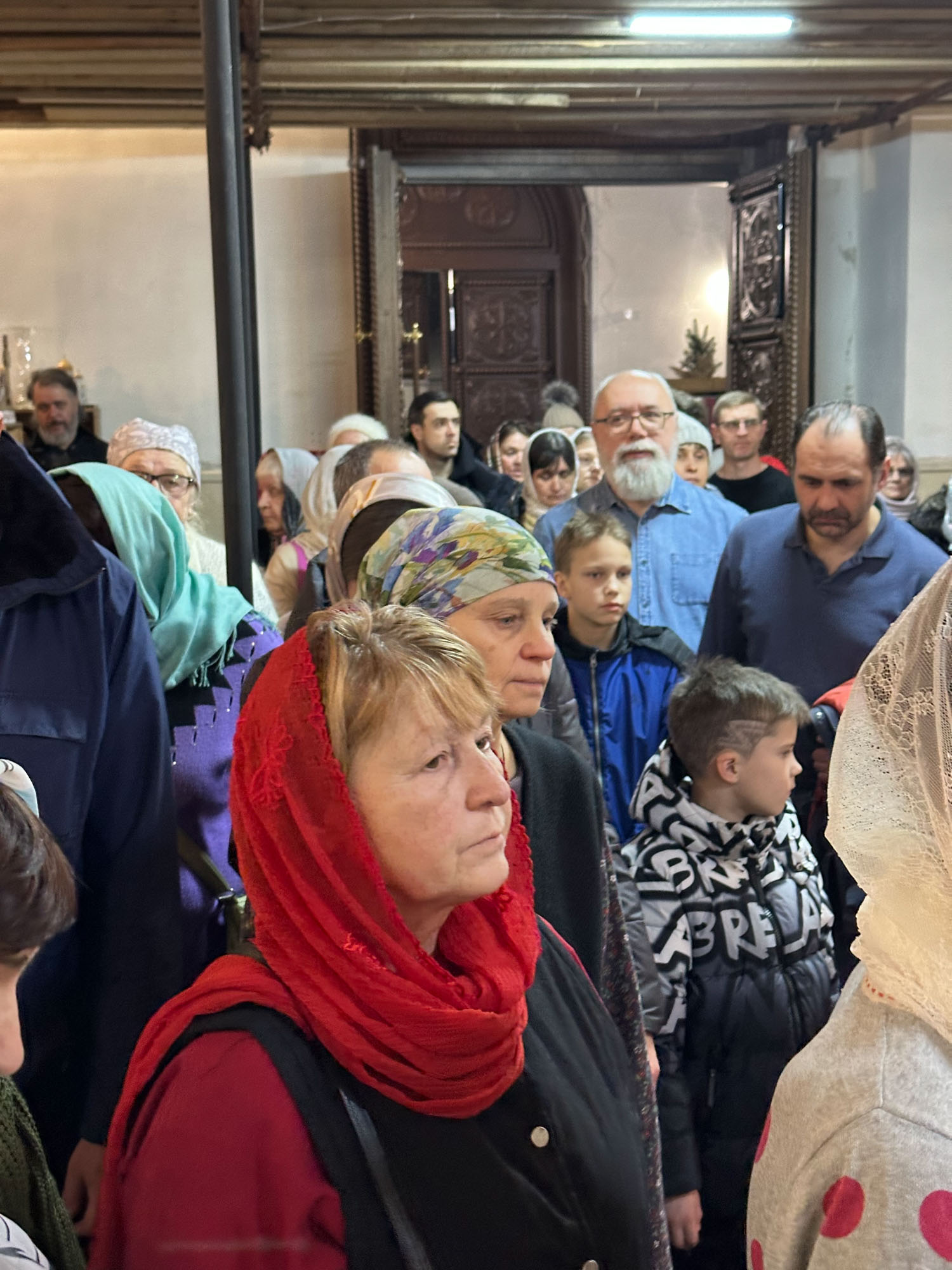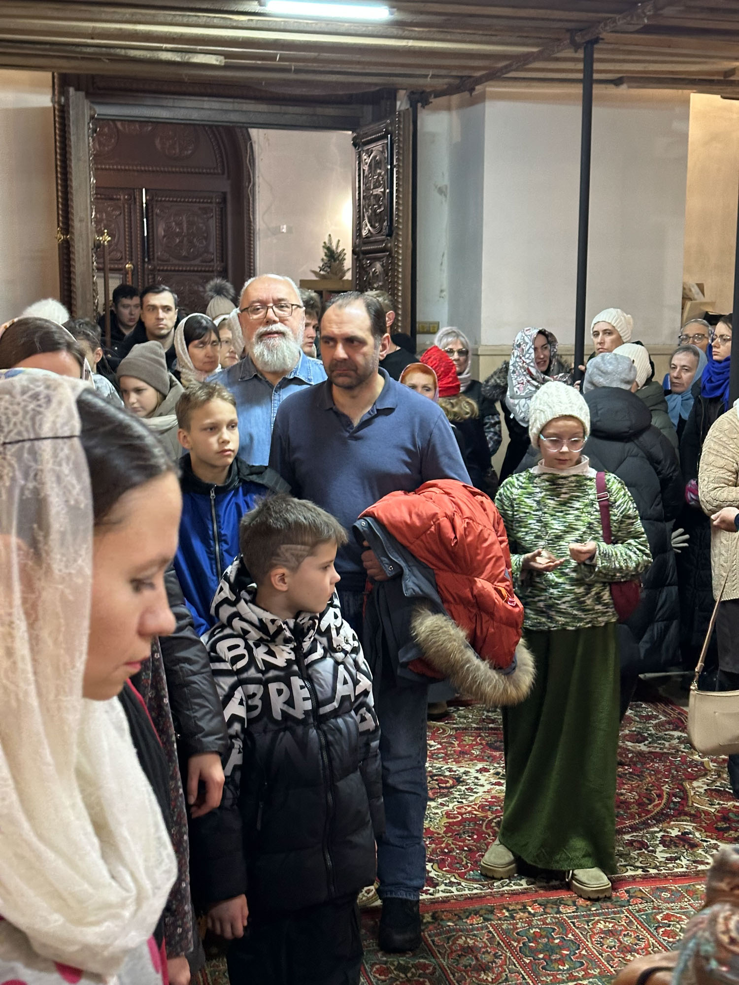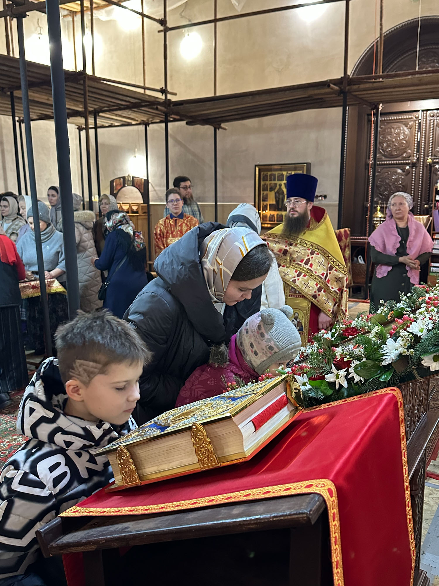 После чтения Евангелия отец Димитрий обратился к молящимся с проповедью, посвящённой евангельской притче о блудном сыне, которой посвящена эта подготовительная неделя к Великому посту.