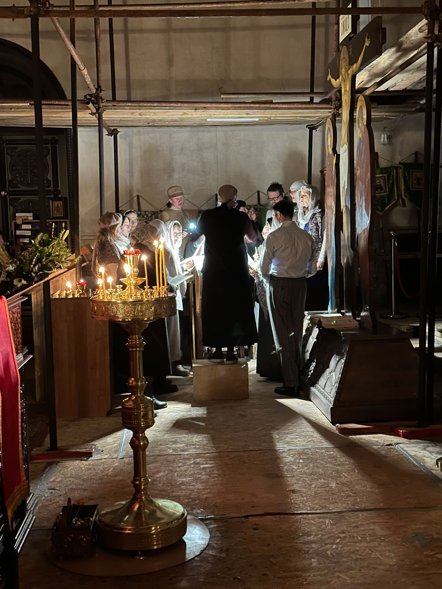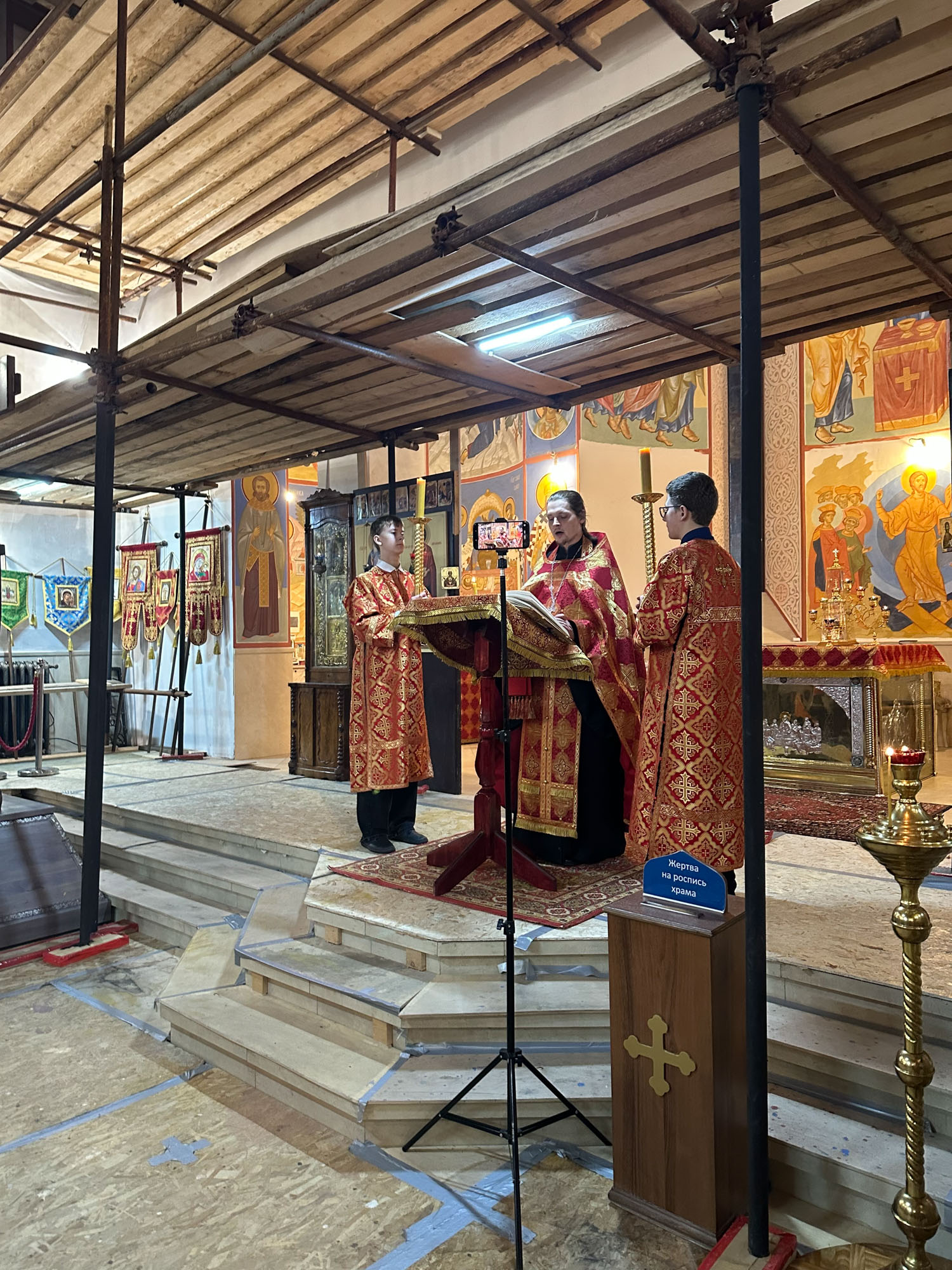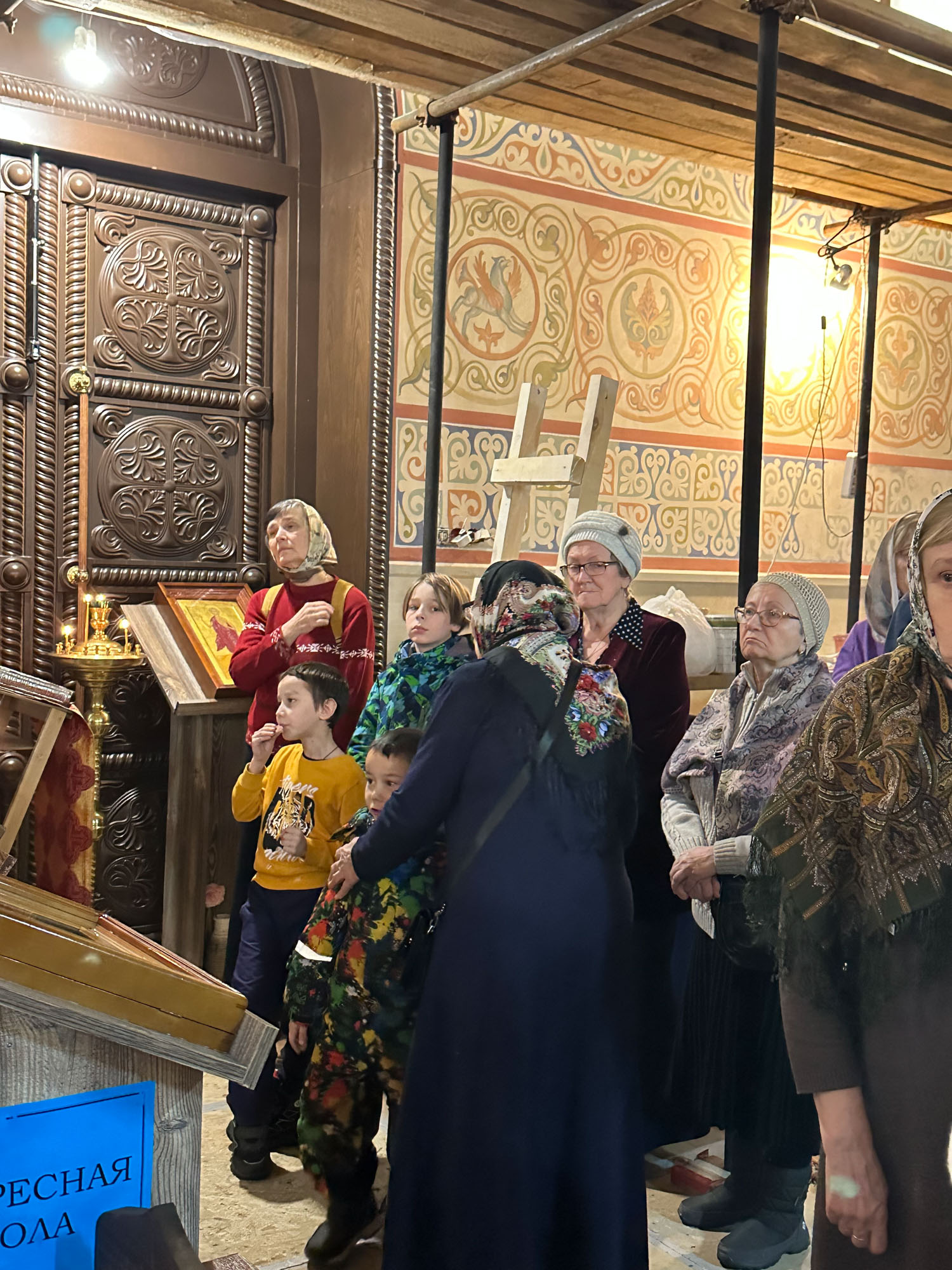 После чтения Евангелия отец Димитрий обратился к молящимся с проповедью, посвящённой евангельской притче о блудном сыне, которой посвящена эта подготовительная неделя к Великому посту.