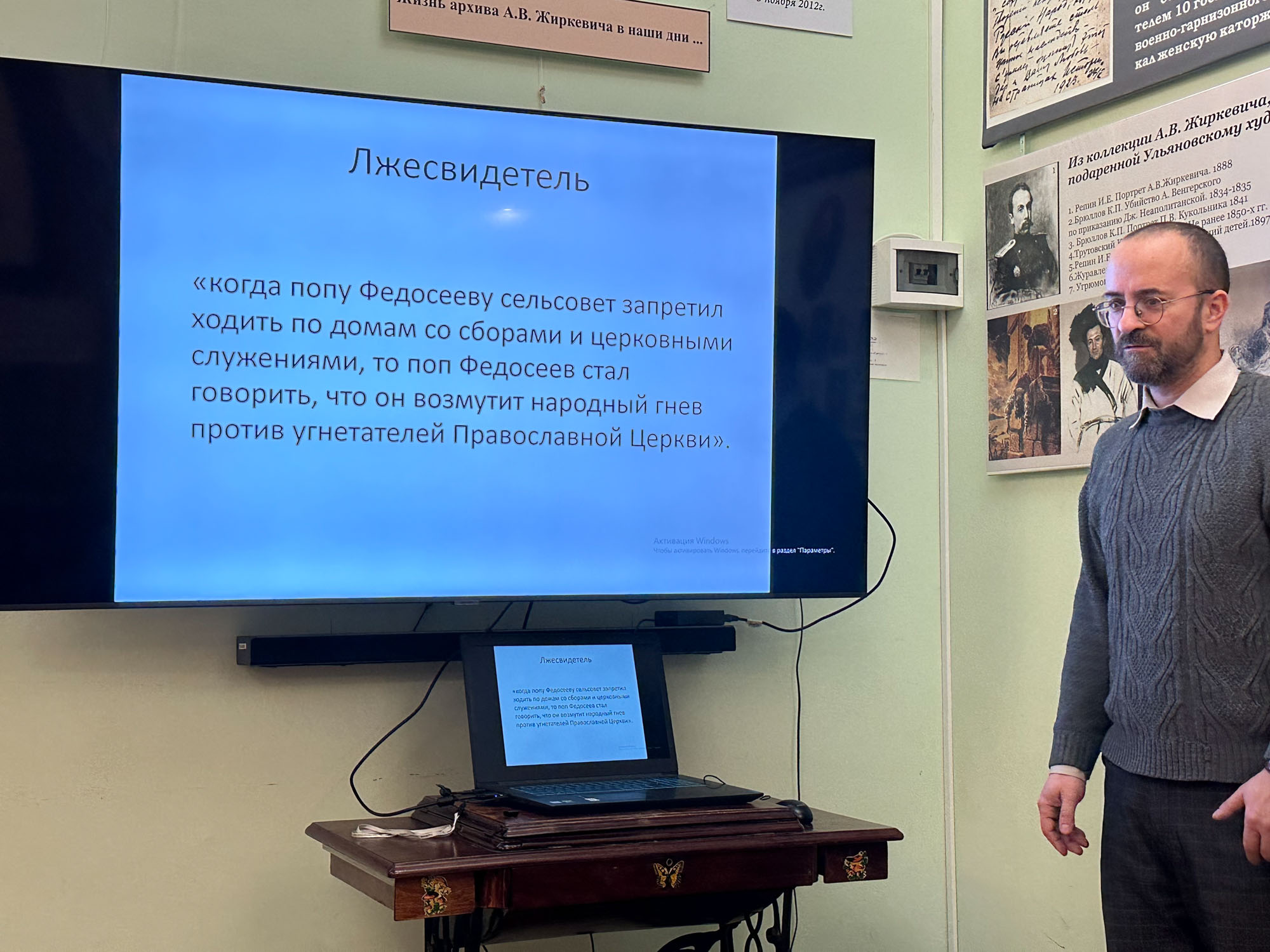 Далее с докладом о шатурском преподобномученике Аполлосе (Федосееве) выступил учитель истории, обществознания и духовного краеведения Подмосковья МАОУ СОШ №16 г.о.Щёлково Тимофей Александрович Балыко.
