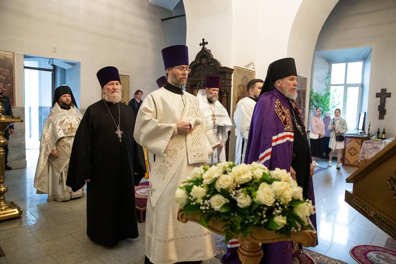 После богослужения к Его Преосвященству с приветственным словом обратился настоятель храма протоиерей Сергий Дубинин, который поблагодарил Владыку за визит и совместную молитву, и на память о богослужении подарил Владыке Минею XVIII века.