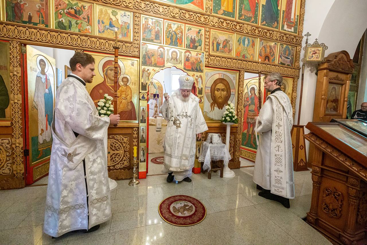 После Великого освящения Владыка Николай возглавил служение первой Божественной литургии в новоосвященном храме.