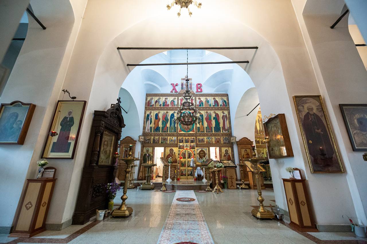 Сначала богослужения проводились в молельном доме рядом с храмом.
