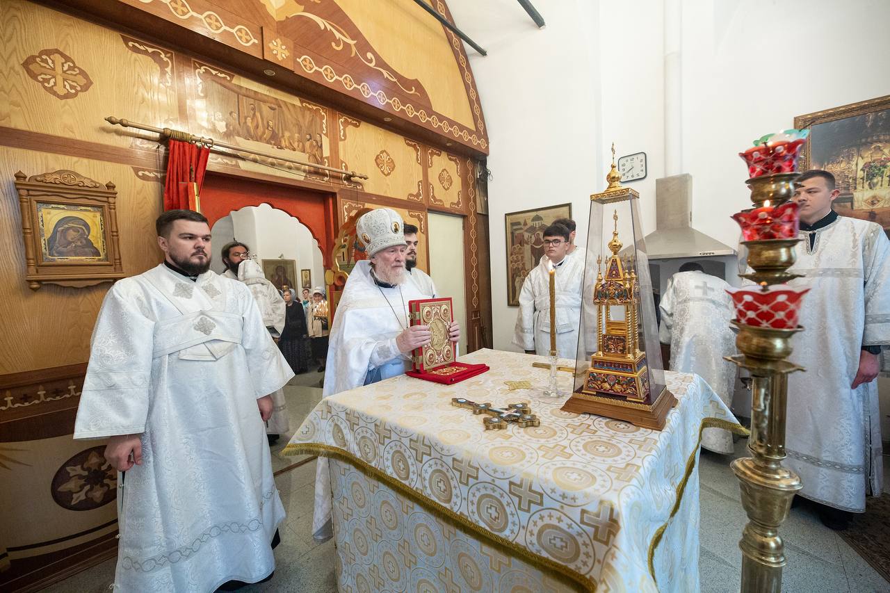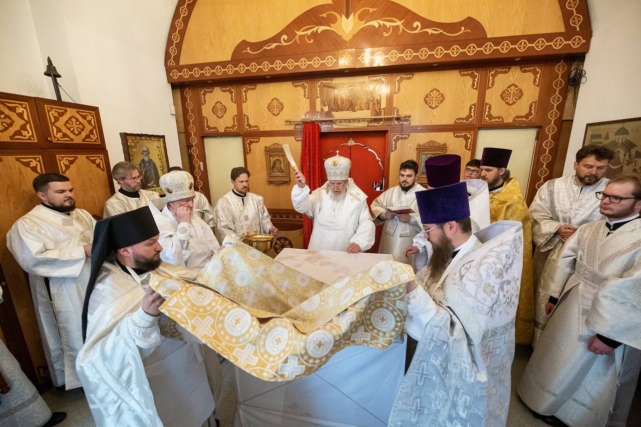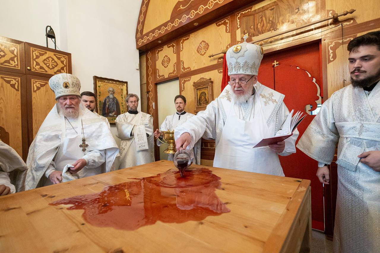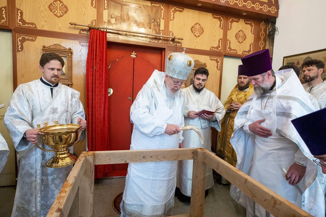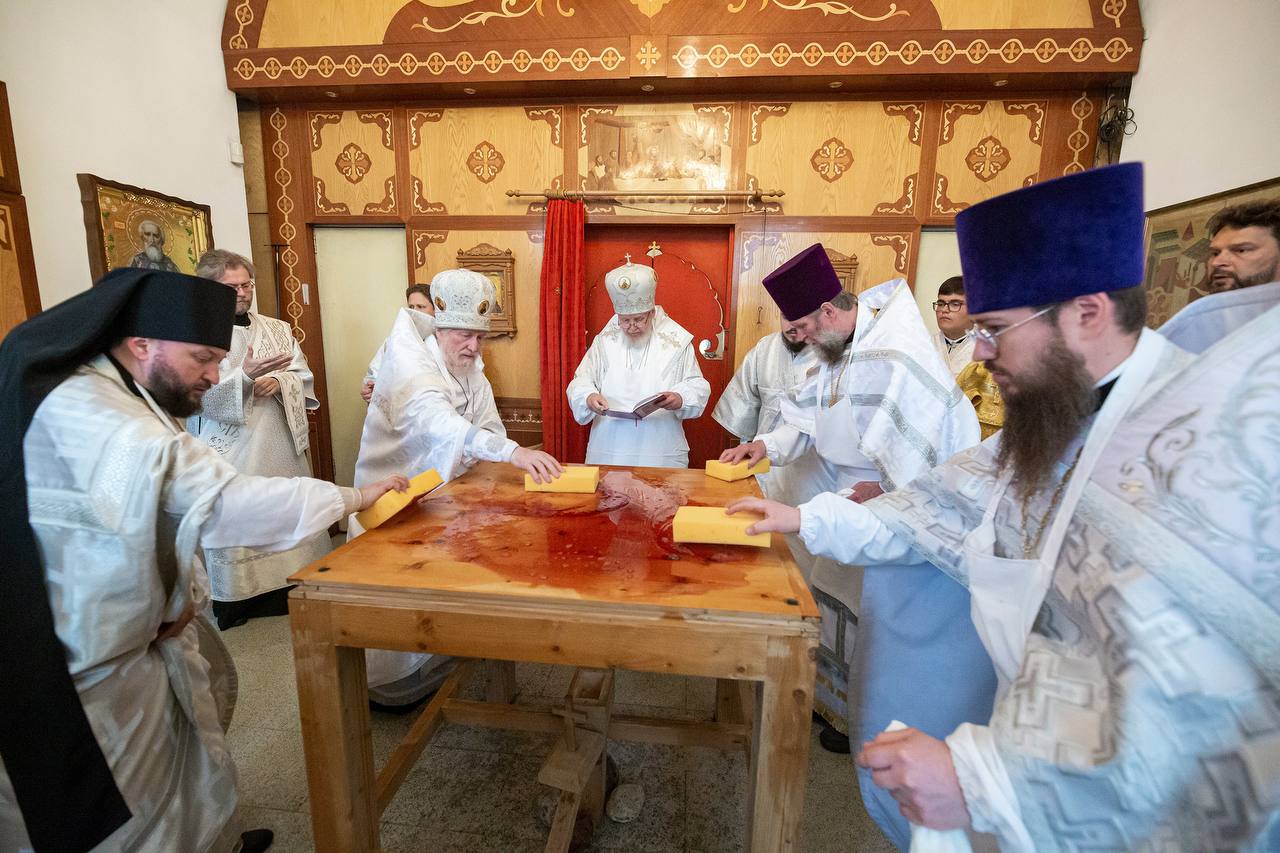 После Великого освящения Владыка Николай возглавил служение первой Божественной литургии в новоосвященном храме.