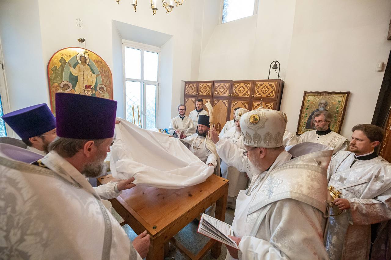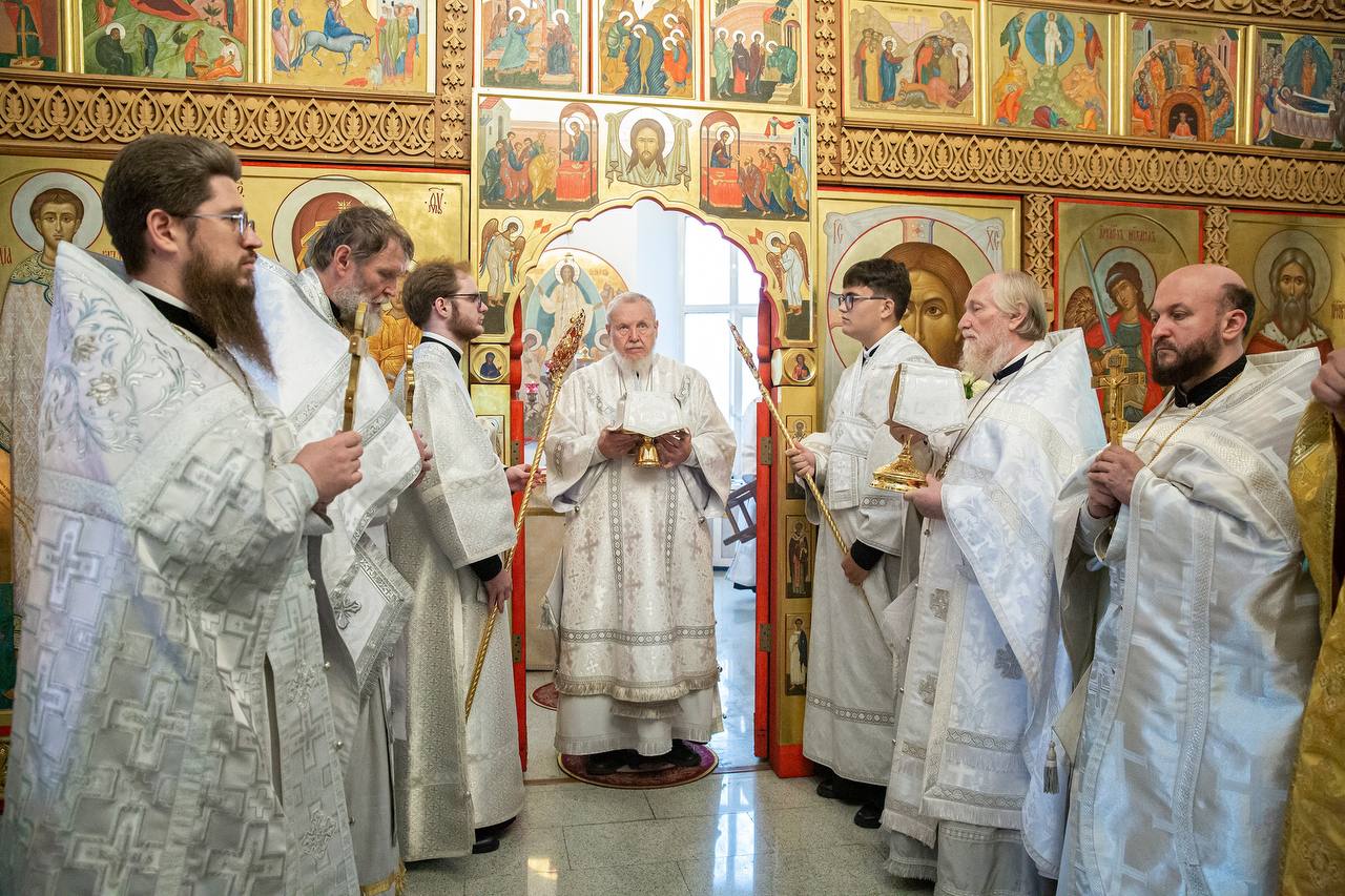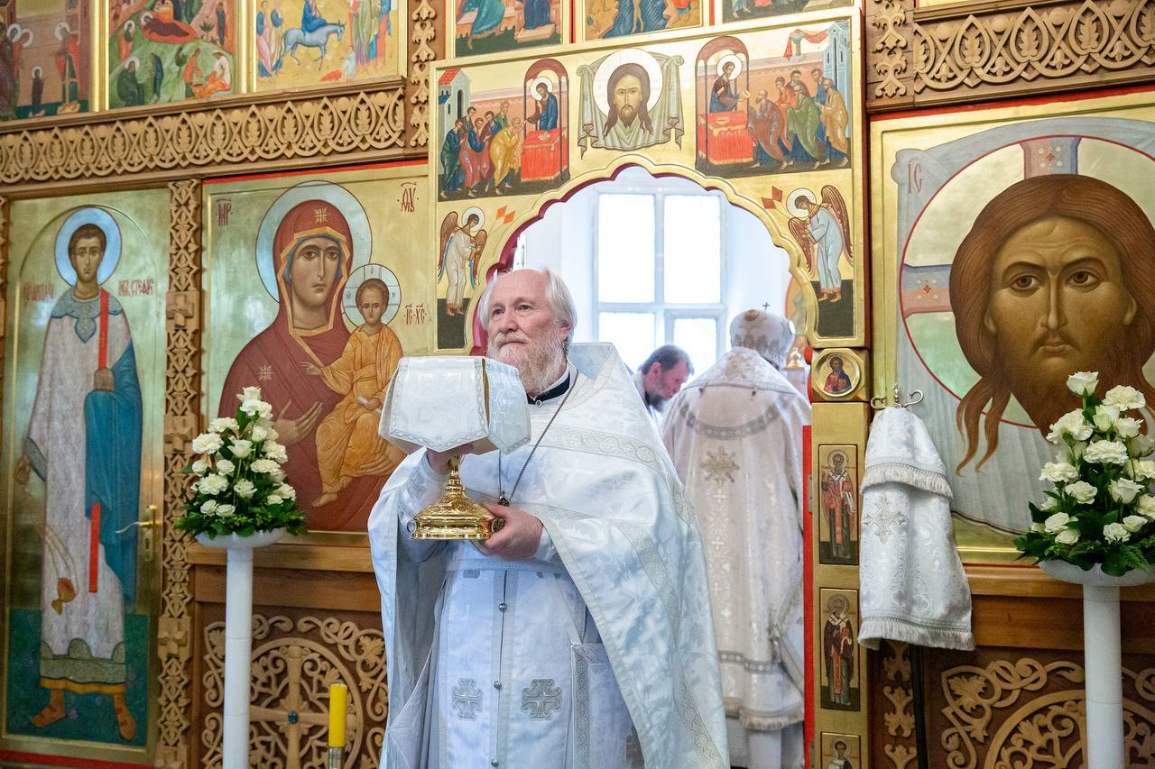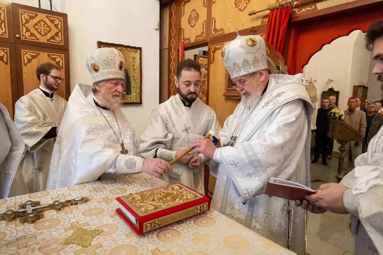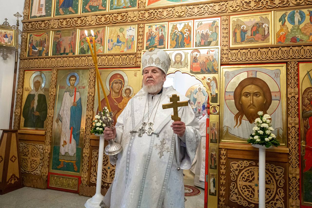 После Великого освящения Владыка Николай возглавил служение первой Божественной литургии в новоосвященном храме.