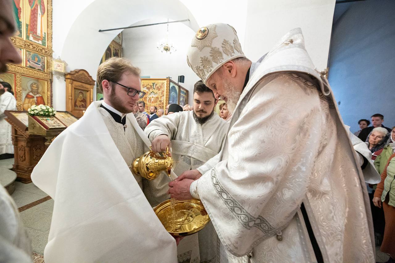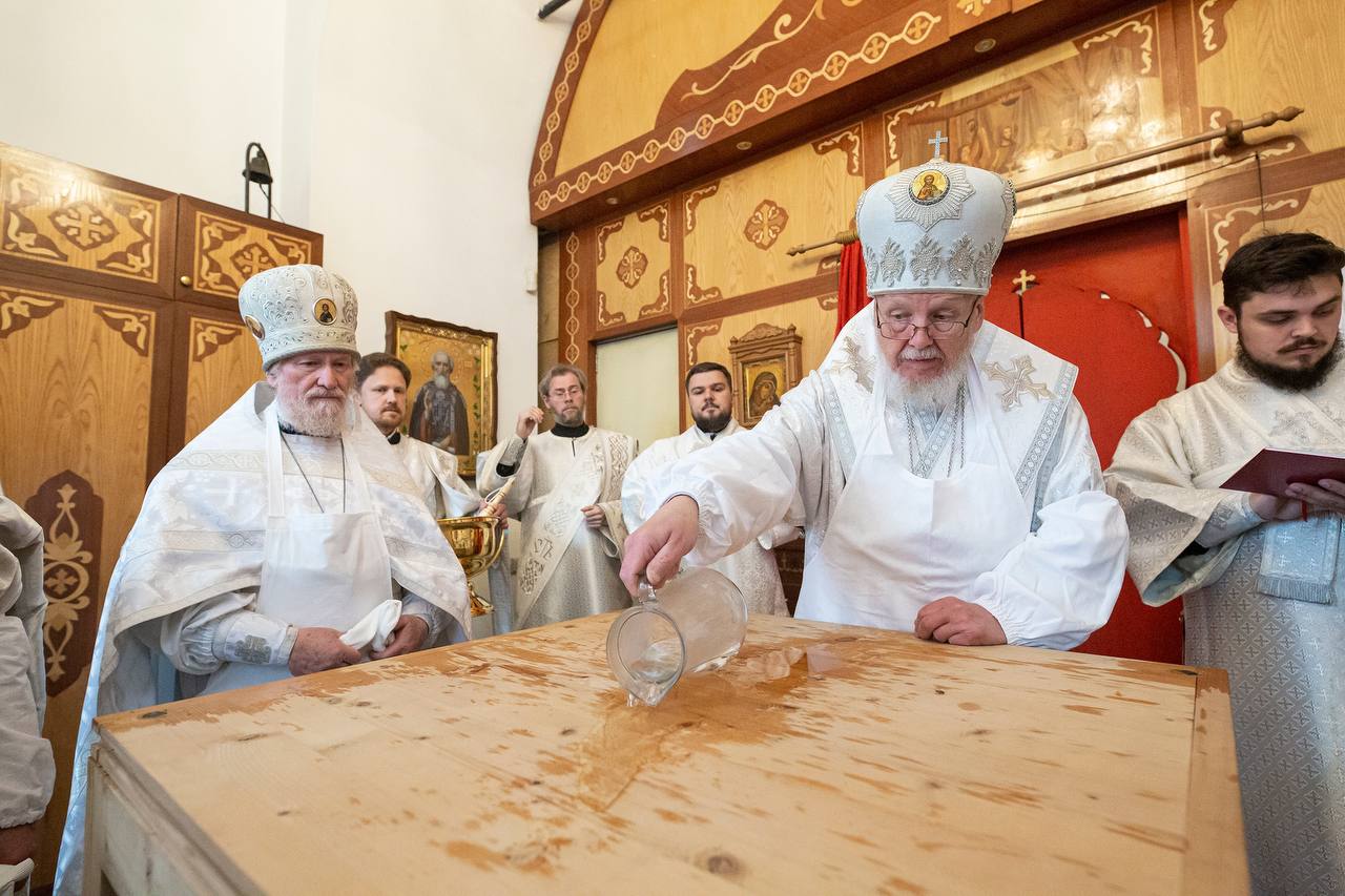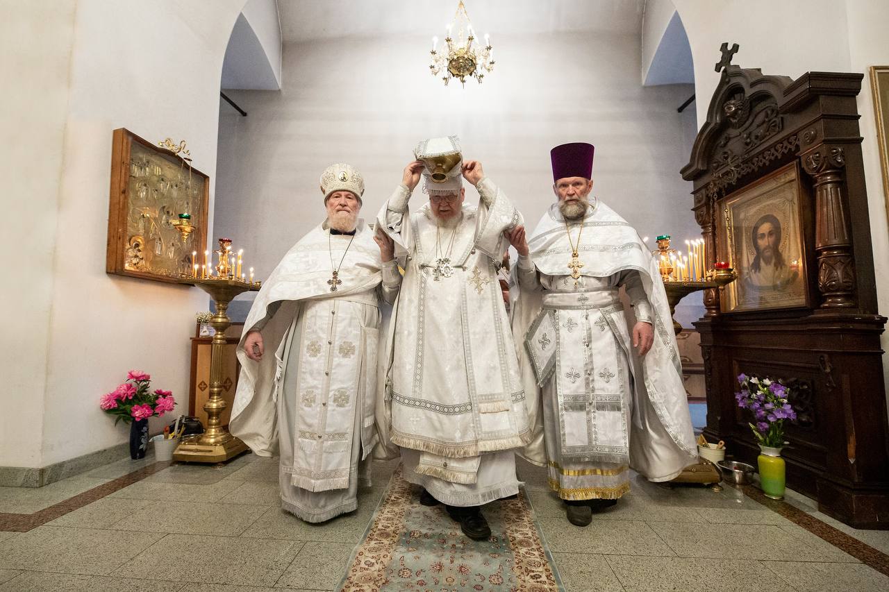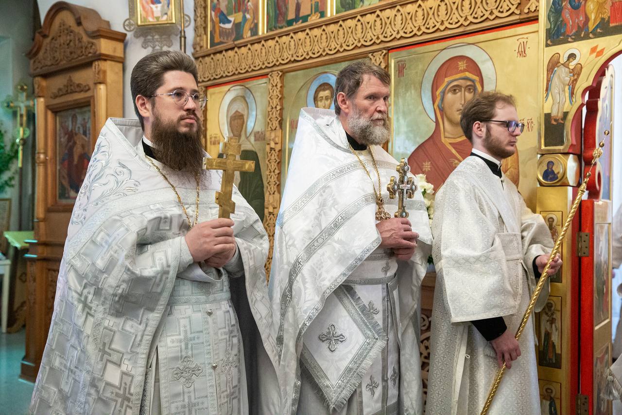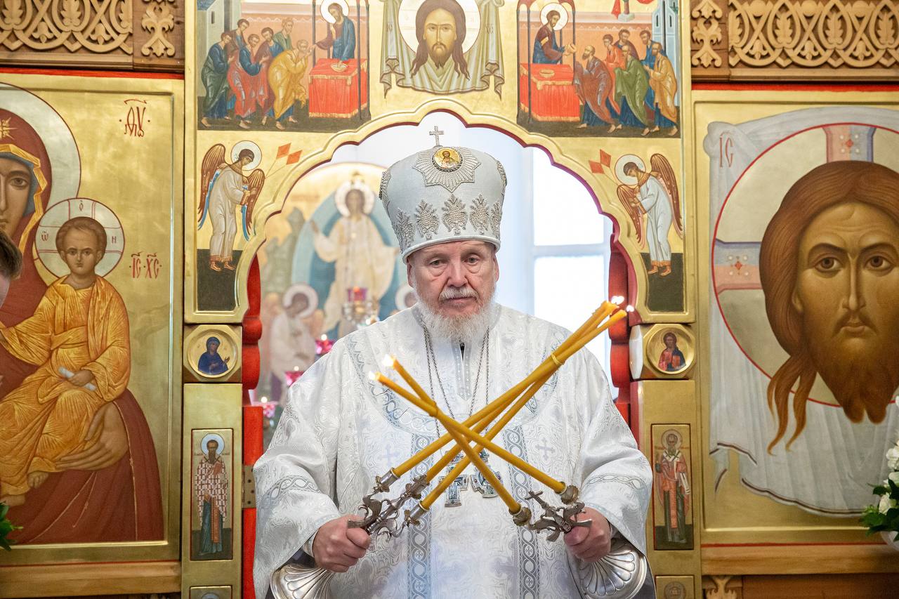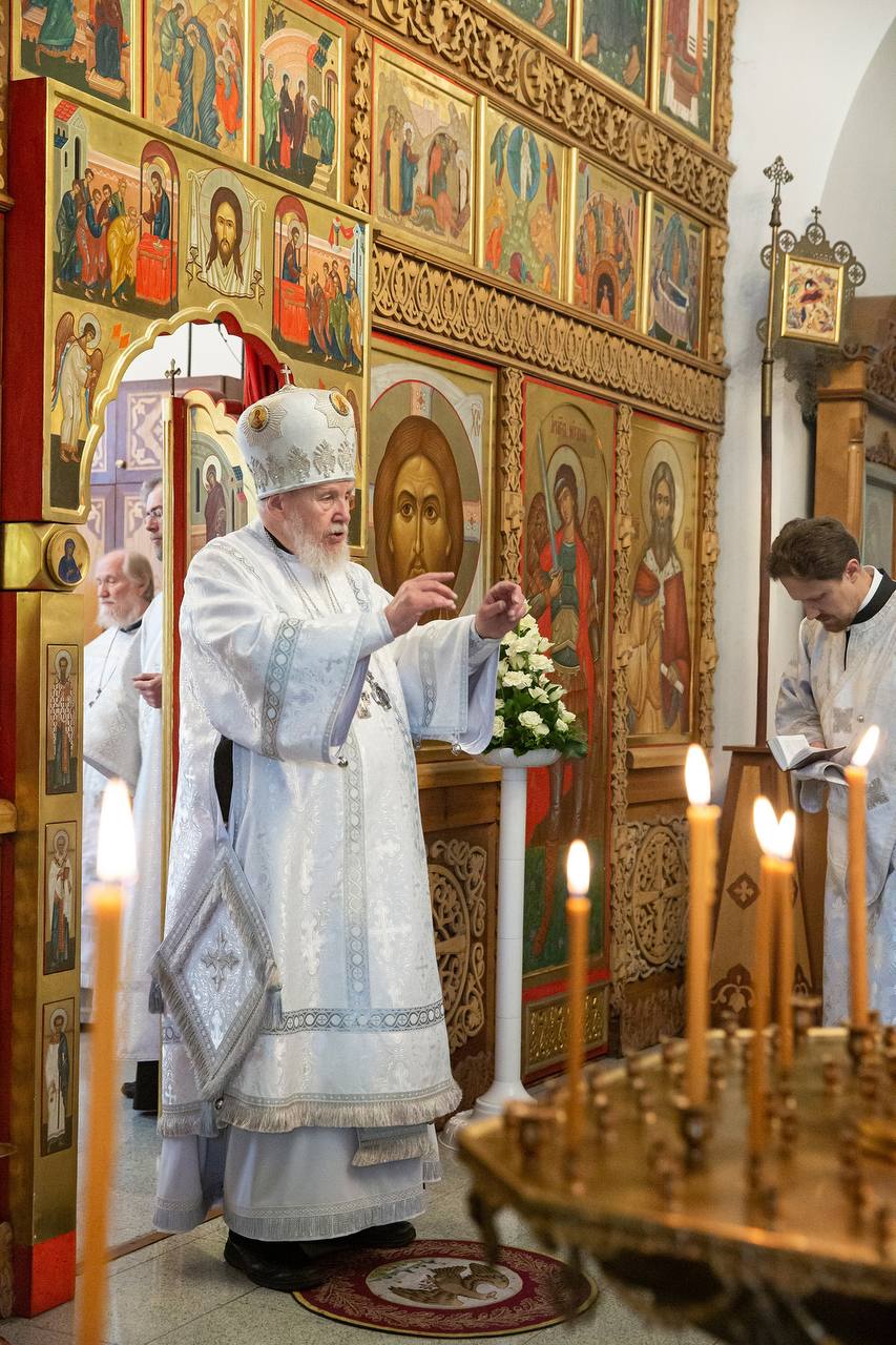 После Великого освящения Владыка Николай возглавил служение первой Божественной литургии в новоосвященном храме.