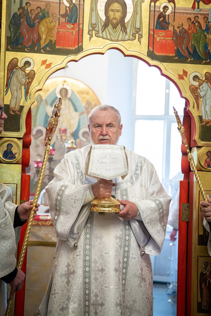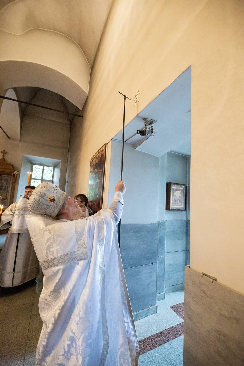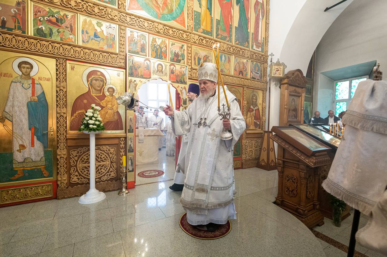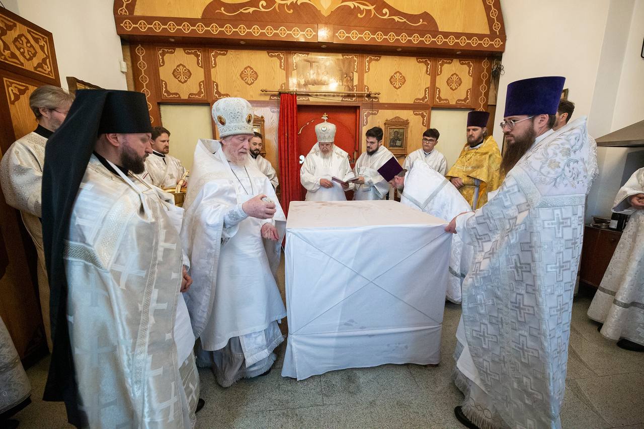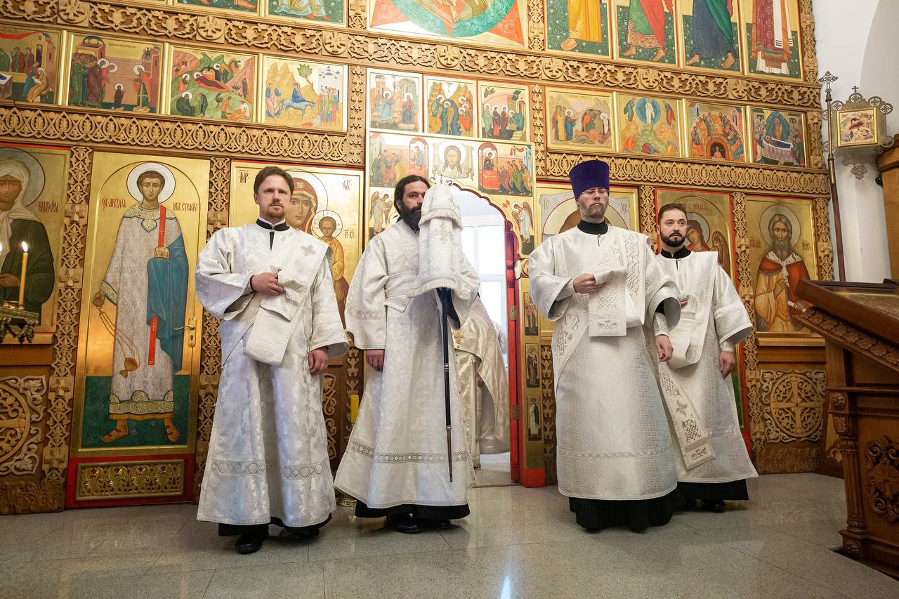 После Великого освящения Владыка Николай возглавил служение первой Божественной литургии в новоосвященном храме.