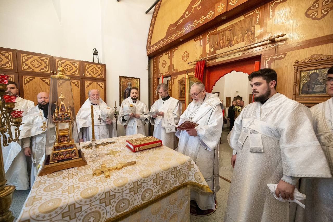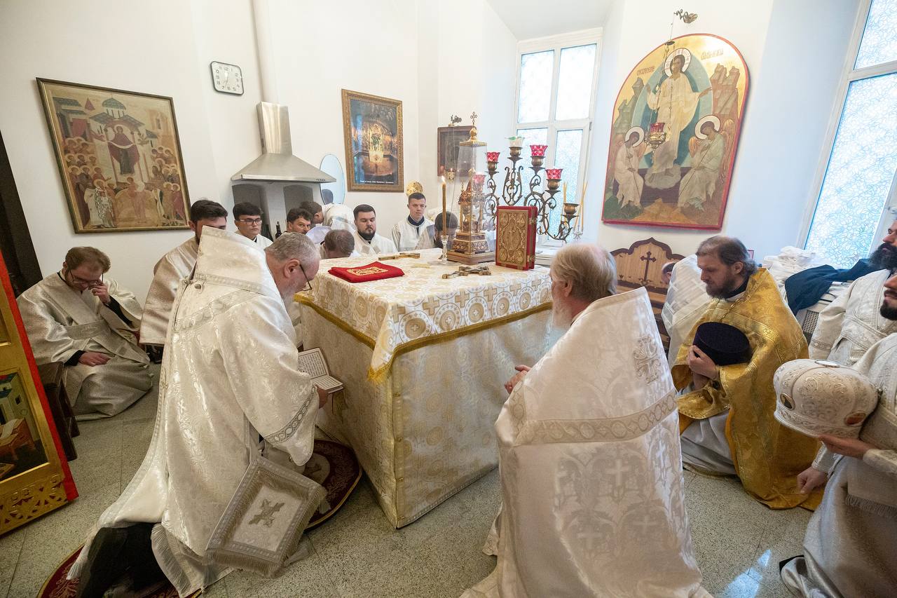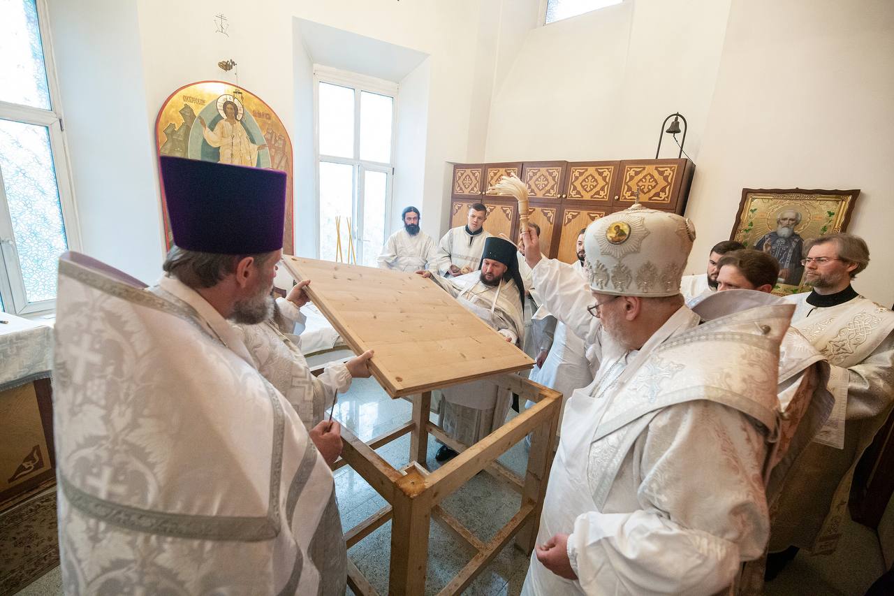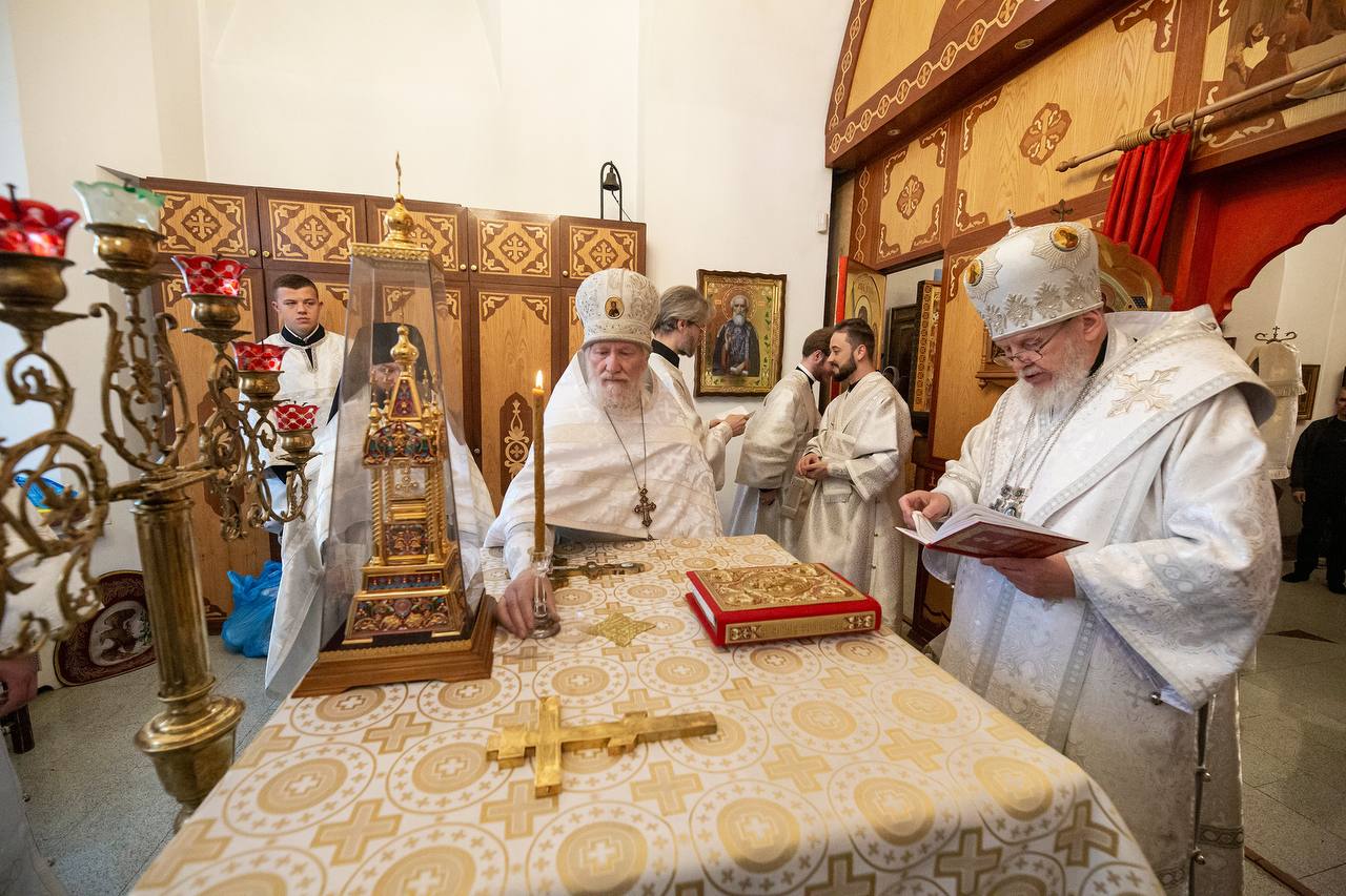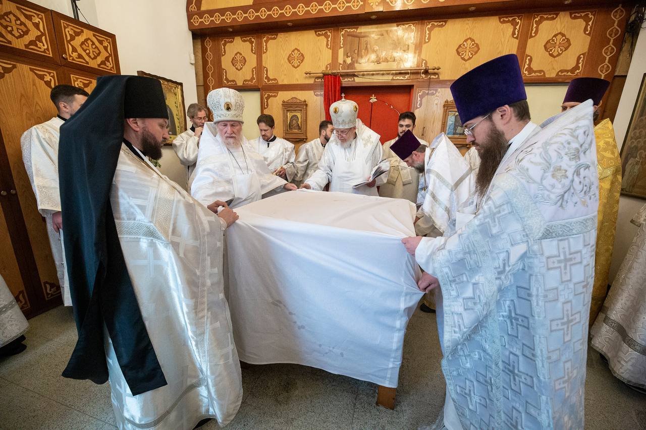 После Великого освящения Владыка Николай возглавил служение первой Божественной литургии в новоосвященном храме.