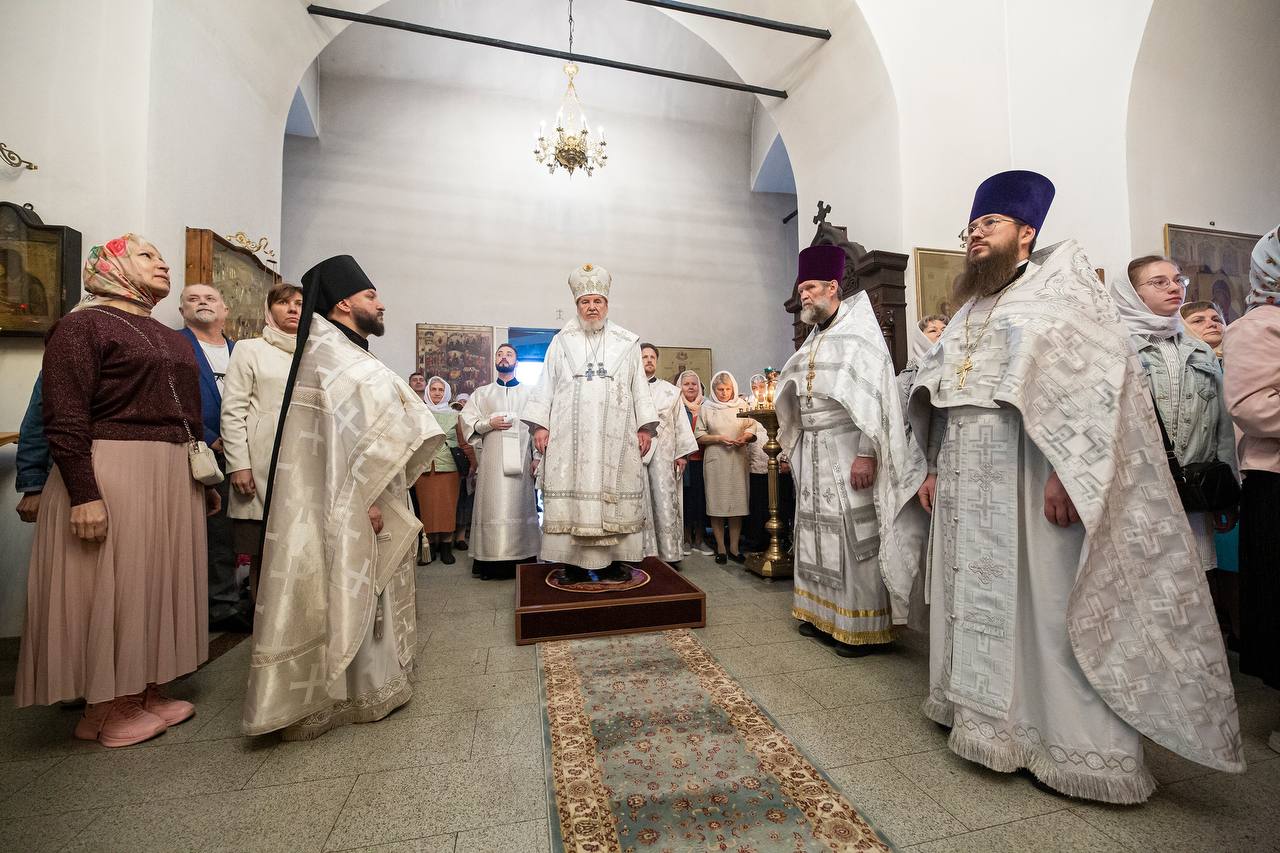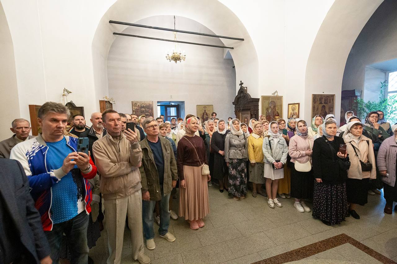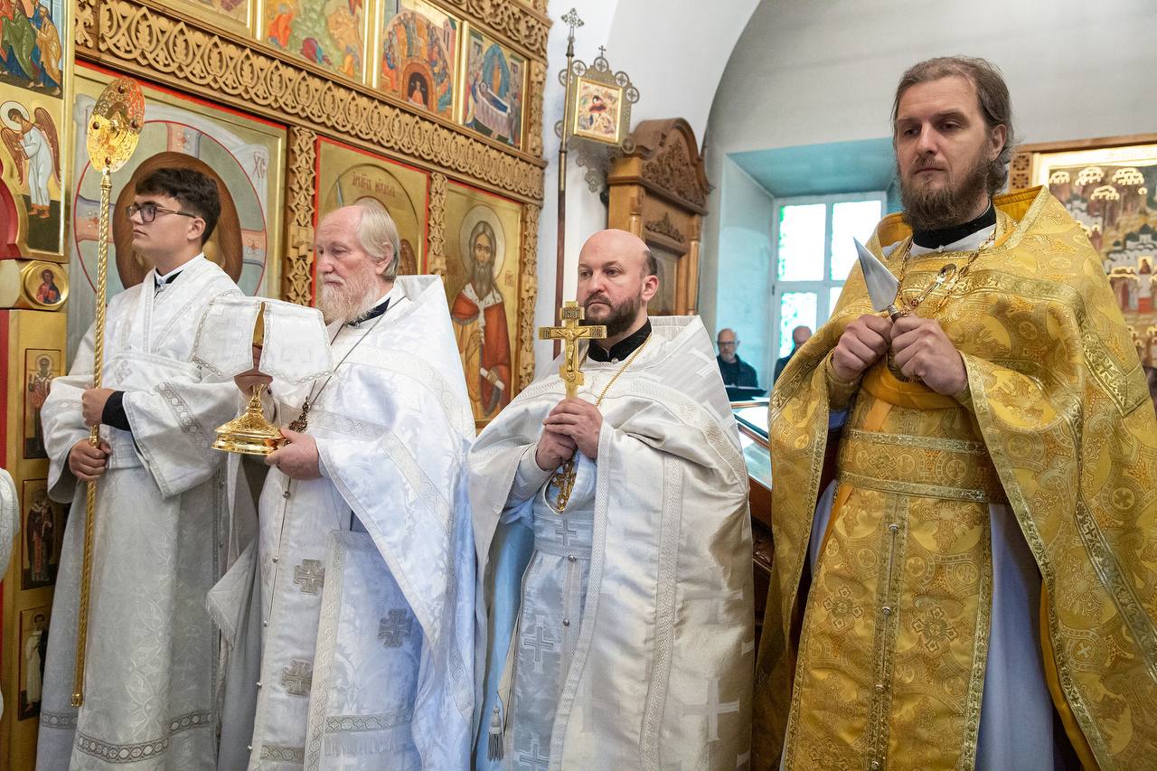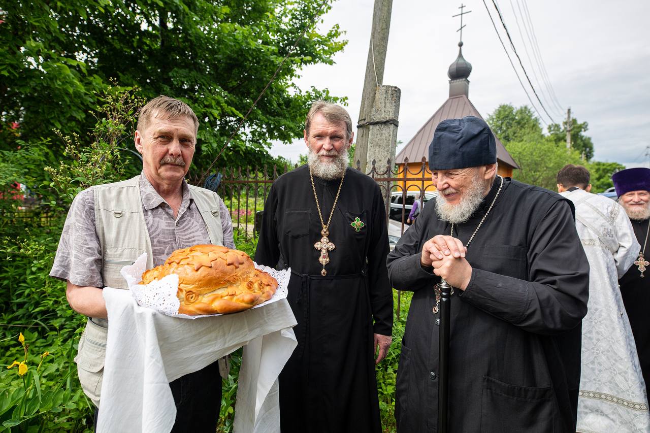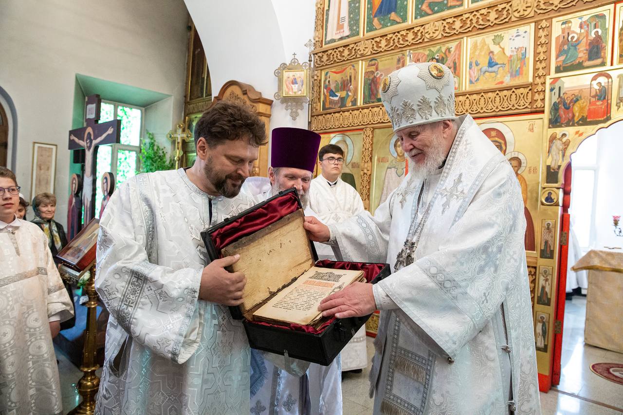 После богослужения к Его Преосвященству с приветственным словом обратился настоятель храма протоиерей Сергий Дубинин, который поблагодарил Владыку за визит и совместную молитву, и на память о богослужении подарил Владыке Минею XVIII века.