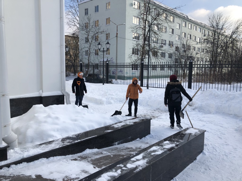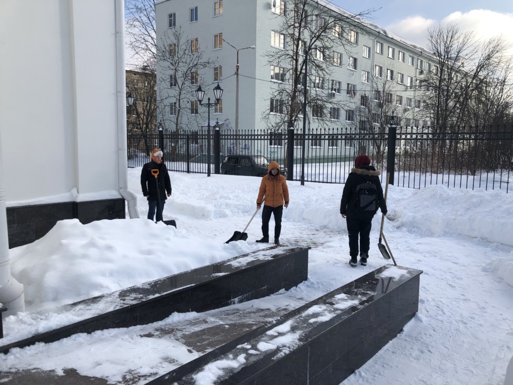 18 февраля учащиеся СП № 3, 4 групп 3939 Сависько Денис, Крылов Дмитрий, 3020в Евдокимов Виталий, 3021в Смаилов Дмитрий, 3920в Кузнецов Павел приняли участие в расчистке снега на территории храма иконы Божьей Матери Державная г. Фрязино.