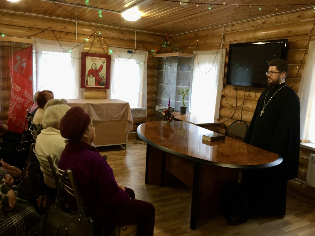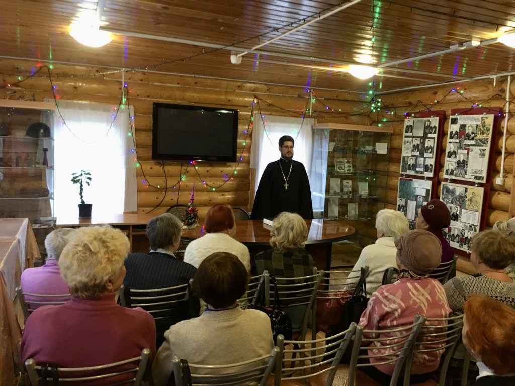 19 декабря в рамках клуба «Дети войны» в доме-музее им. И.И. Иванова состоялась встреча с настоятелем Державного храма города Фрязино священником Димитрием Третьяковым. Батюшка рассказал о праздновании памяти и фрагментах жития святителя Николая, архиепископа Мир Ликийских, чудотворца. А также о предстоящих праздниках Рождества Христова и Крещения Господня. Беседа вызвала живой интерес. В завершении встречи отец Димитрий ответил на возникшие вопросы слушателей.