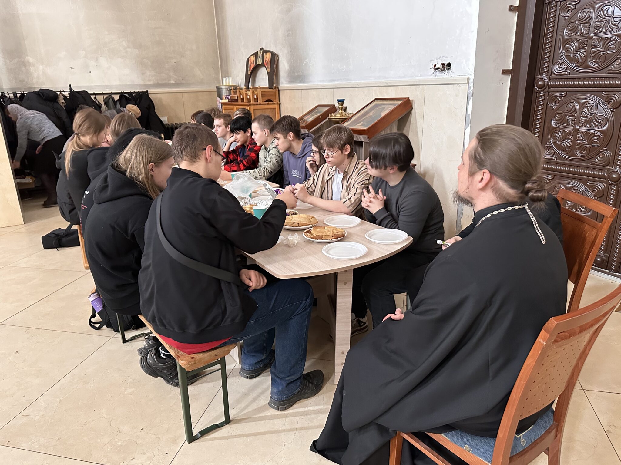 Батюшка провёл душевную беседу с подростками в рамках празднования недели православной молодежи в колледже.