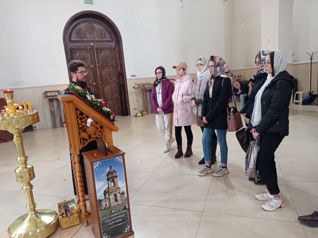 5 апреля, в рамках акции «Здоровье – твое богатство», обучающиеся группы 3918 СП № 3 Щёлковского колледжа посетили храм иконы Божией Матери Державная и встретились со священником, настоятелем храма Димитрием Третьяковым.