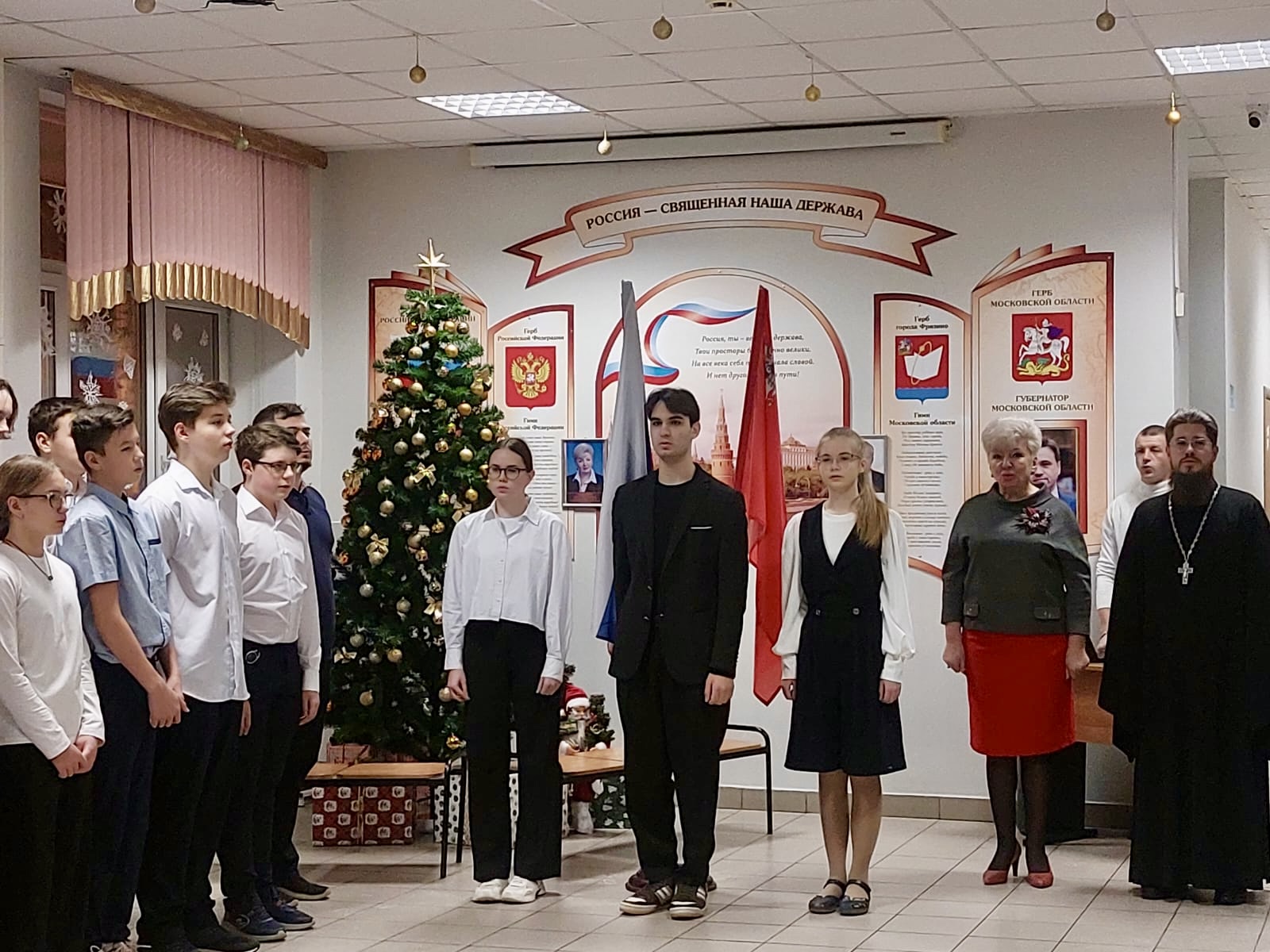 16 декабря 2024 года настоятель храма иконы Божией Матери Державная г. Фрязино священник Димитрий Третьяков принял участие в торжественной линейке, церемонии поднятия флага и исполнения гимна Российской Федерации в школе №3 г. Фрязино.
