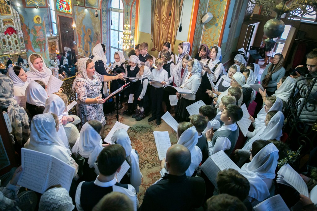 За богослужением пел сводный детский хор учащихся всех 5-ти отделений гимназии «Ковчег» под управлением регента Марии Степановой.