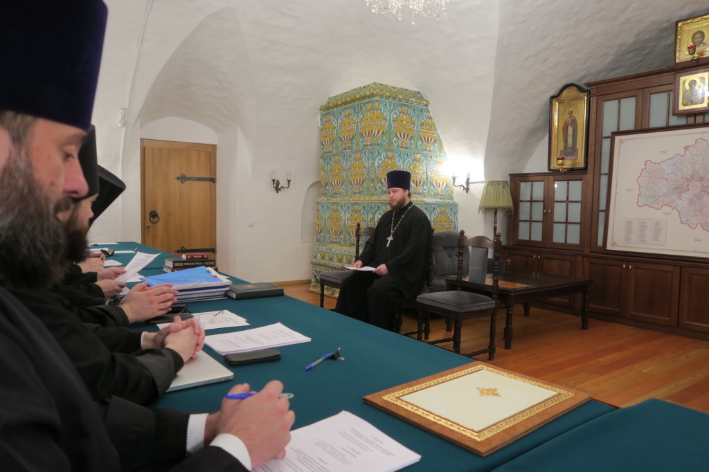 На заседании были рассмотрены вопросы: о повестке дня годового собрания духовенства и мирян Московской епархии; об отделении части приходов Одинцовского округа и включении их в состав Звенигородского благочиния; Положение о благочинии тюремных храмов, расположенных в учреждениях уголовно-исполнительной системы в границах Московской области, а также прошения о восстановлении в священнослужении, о принятии в клир Московской епархии и рукоположении в священный сан.